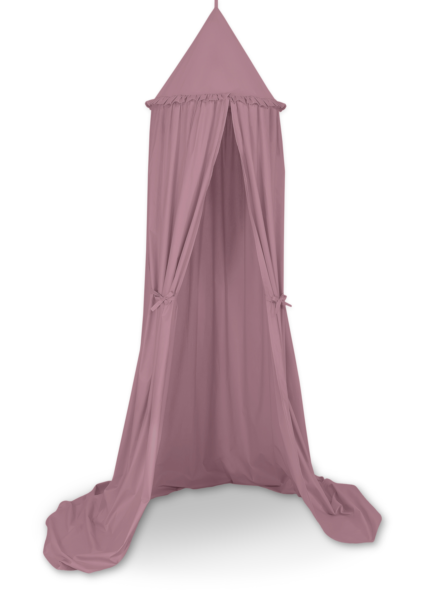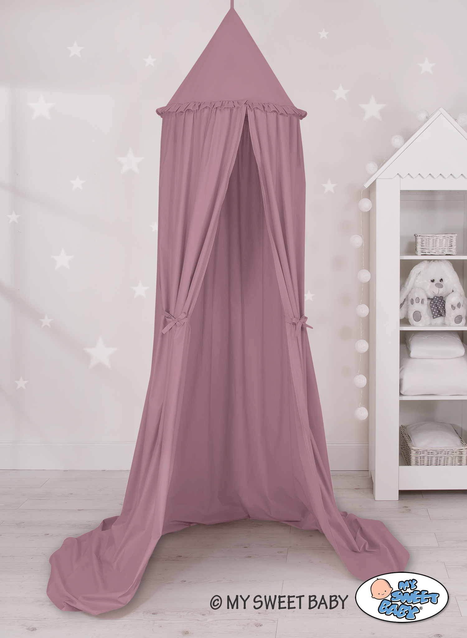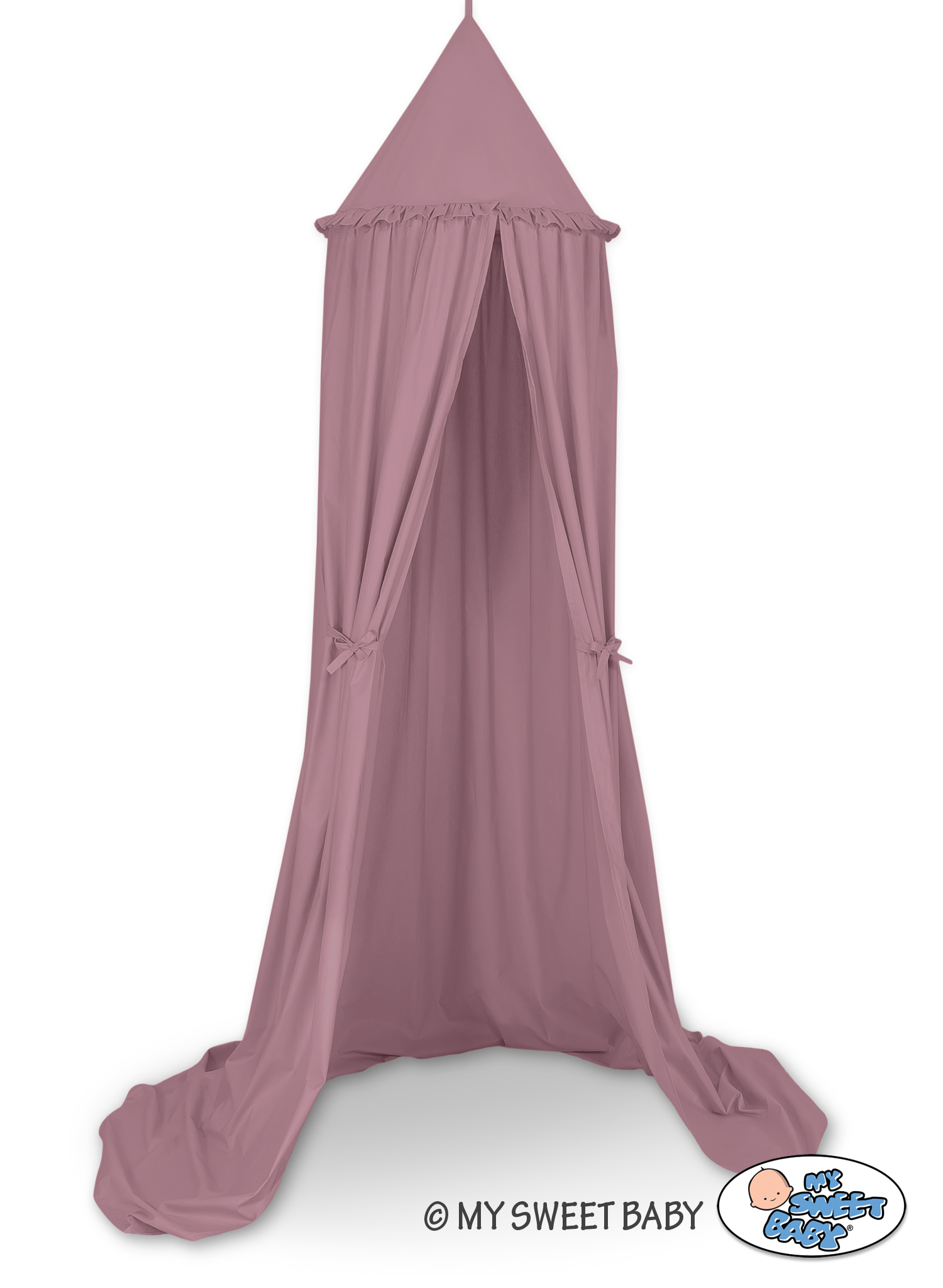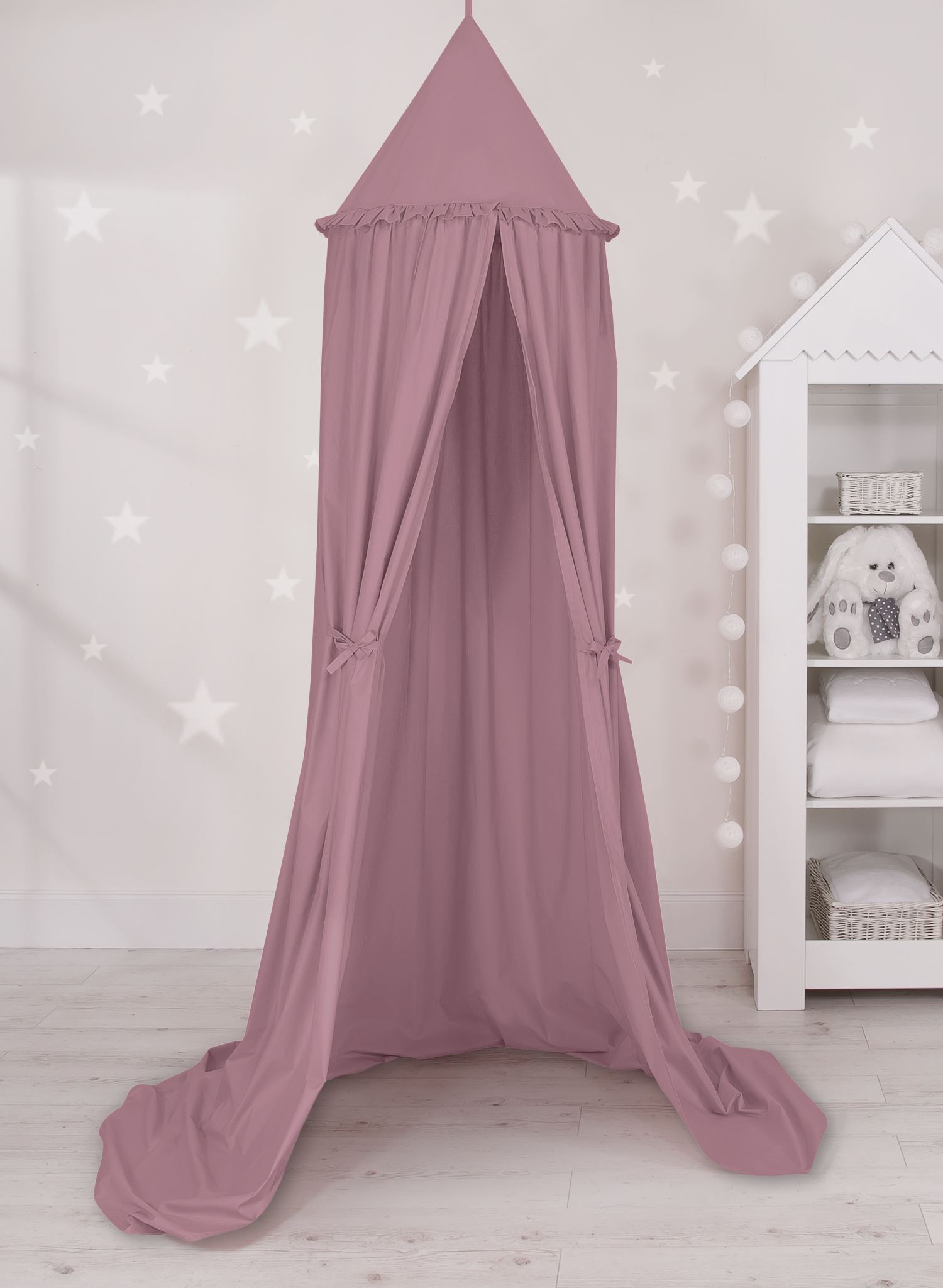 Efektowny wiszący baldachim, piękny element pokoju dziecięcego. Może służyć jako niepowtarzalna dekoracja łóżeczka dziecięcego. Jak również może stworzyć przytulne miejsce do zabawy. Zawieszony nad łóżeczkiem dziecięcym osłoni przed nadmiarem światła oraz wytłumi hałasy, tworząc wewnątrz łóżeczka przytulne i bezpieczne miejsce do odpoczynku. Baldachim można łatwo zamontować do sufitu. Jest długi ok. 260cm, dzięki czemu swobodnie ułoży się na ziemi, tworząc doskonałą kryjówkę i miejsce do zabawy.