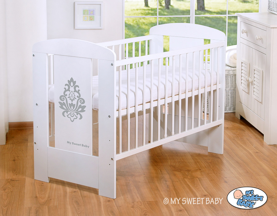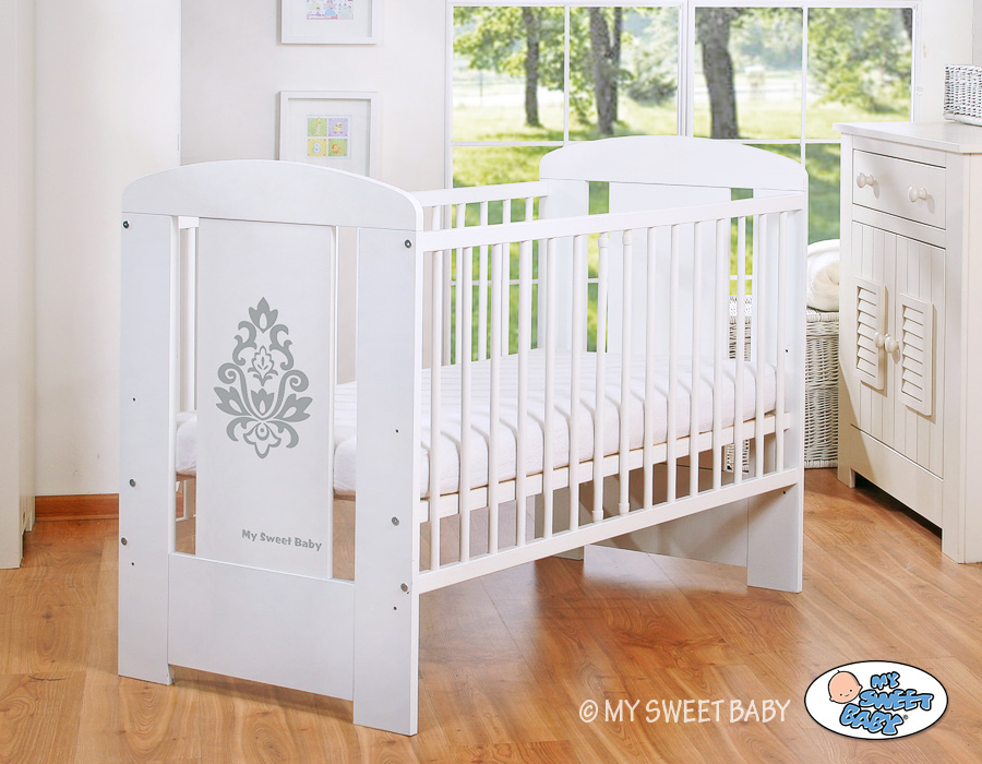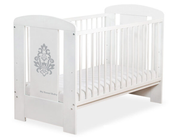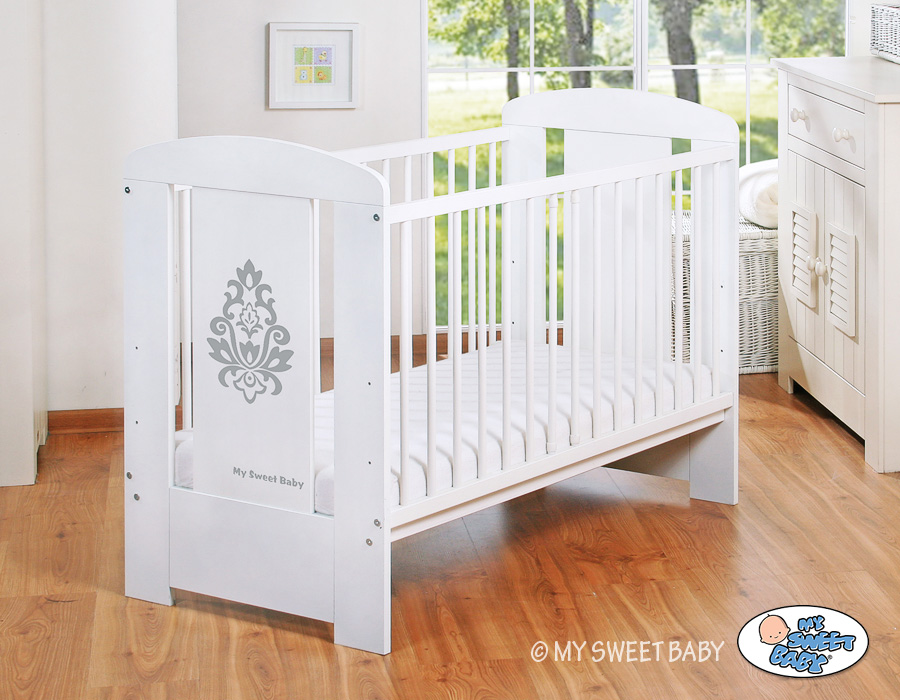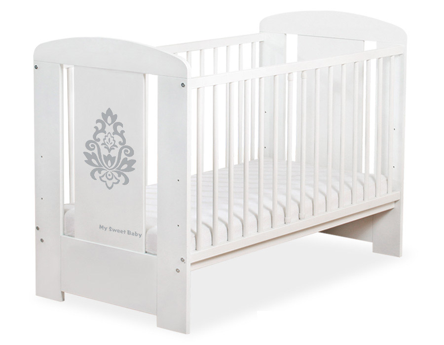 Drewniane białe łóżeczko dla niemowląt 120x60cm Glamour biało-szare