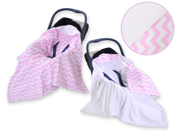 Duży otulacz dla niemowląt do fotelika nosidełka wózka dwustronny – Chevron różowo-biały