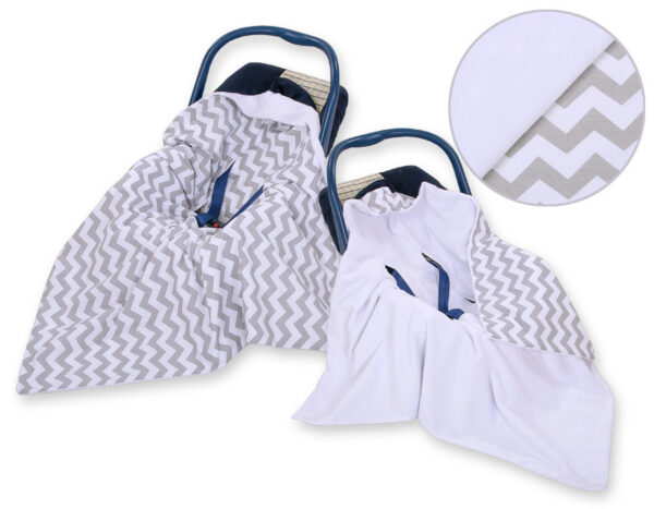Duży otulacz dla niemowląt do fotelika nosidełka wózka dwustronny – Chevron szaro-biały