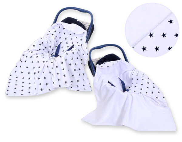 Duży otulacz dla niemowląt do fotelika nosidełka wózka dwustronny – Gwiazdki czarne