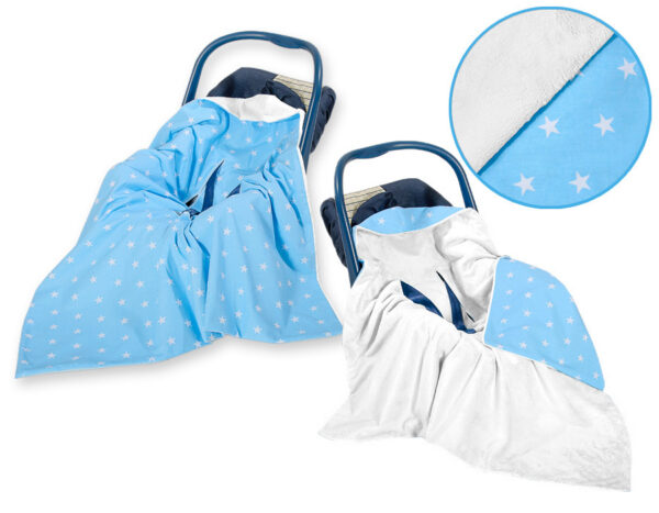 Duży otulacz dla niemowląt do fotelika nosidełka wózka dwustronny – Gwiazdki niebieskie