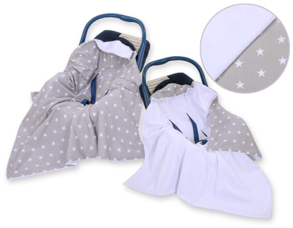 Duży otulacz dla niemowląt do fotelika nosidełka wózka dwustronny – Gwiazdki szaro-białe