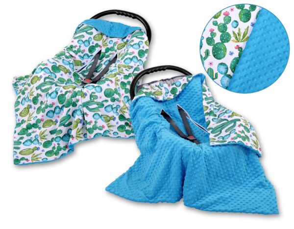 Duży otulacz dla niemowląt do fotelika nosidełka wózka dwustronny – kaktusy