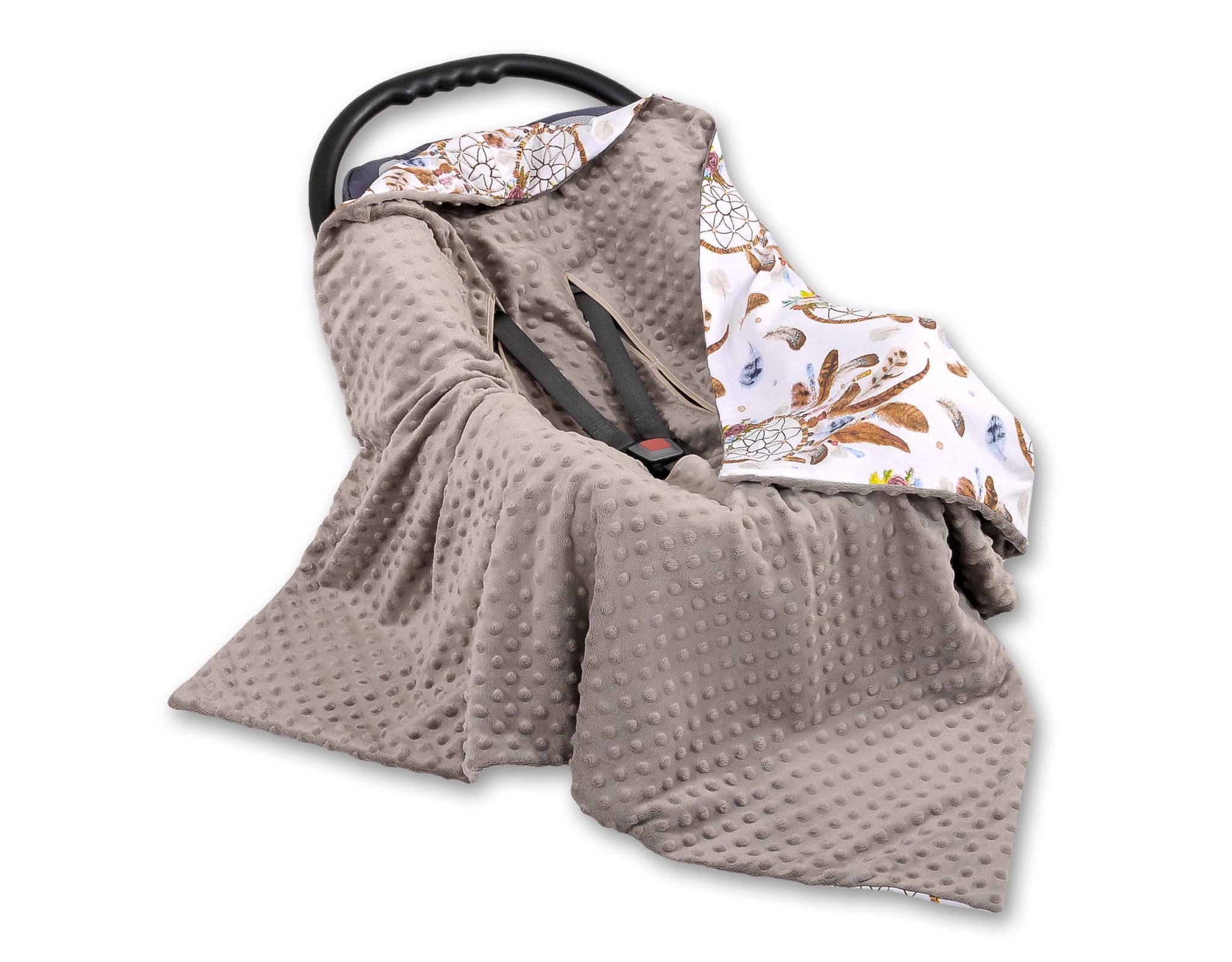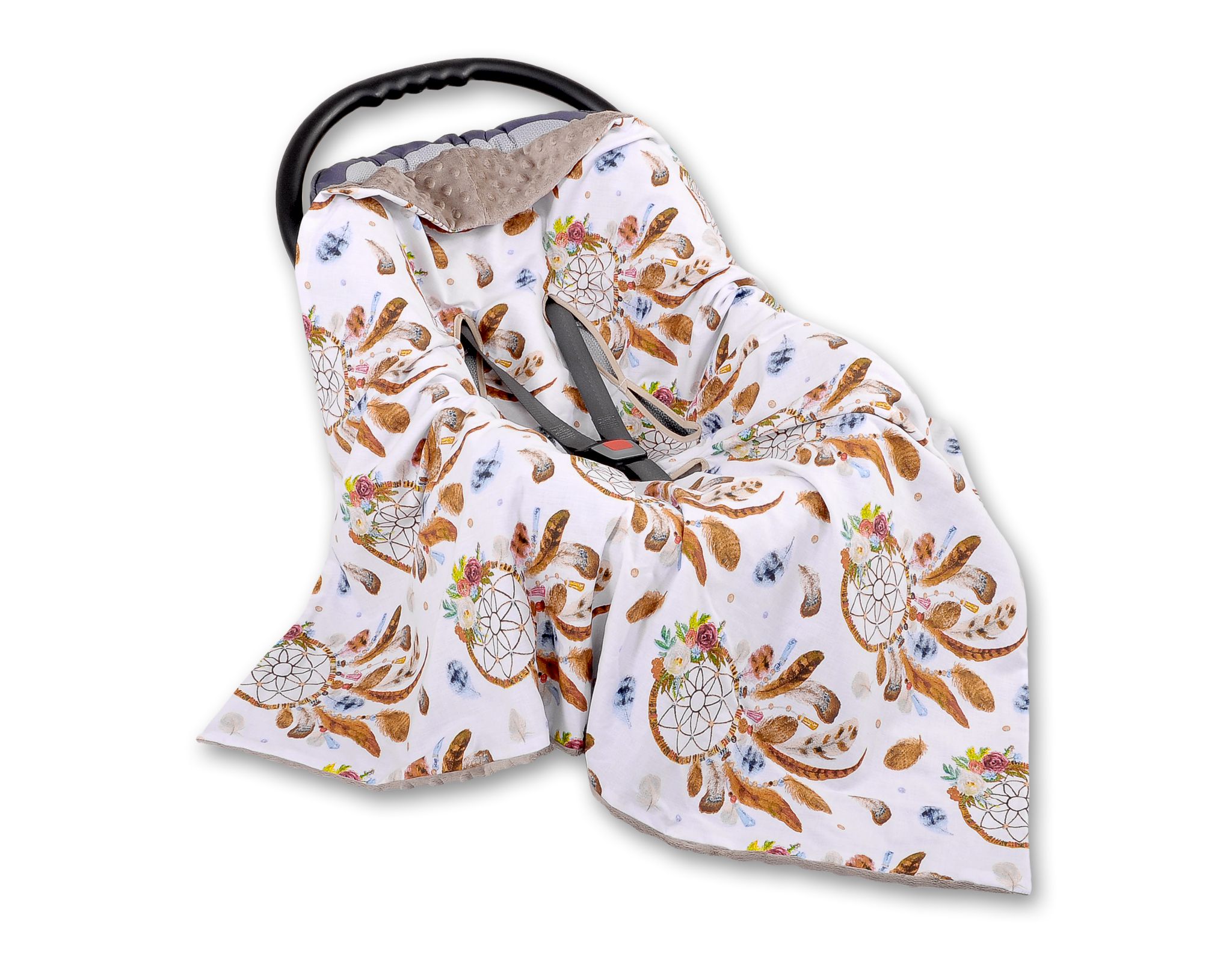 Duży otulacz dla niemowląt do fotelika nosidełka wózka dwustronny- łapacze snów białe/popielaty brąz