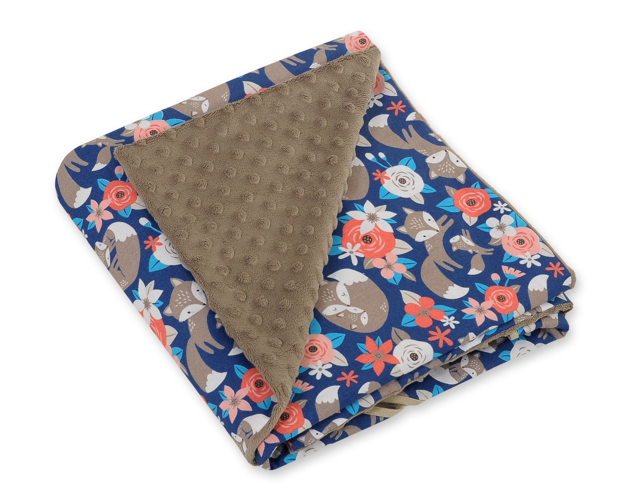 Duży otulacz dla niemowląt do fotelika nosidełka wózka dwustronny – lisia rodzinka na granacie