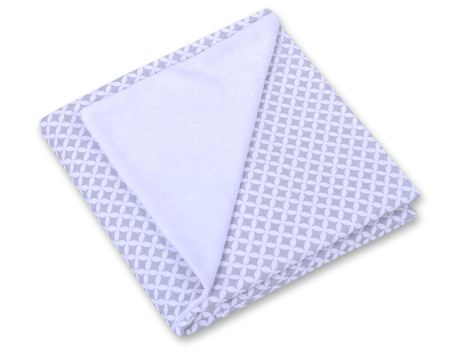 Duży otulacz dla niemowląt do fotelika nosidełka wózka dwustronny – mini-rozeta szara