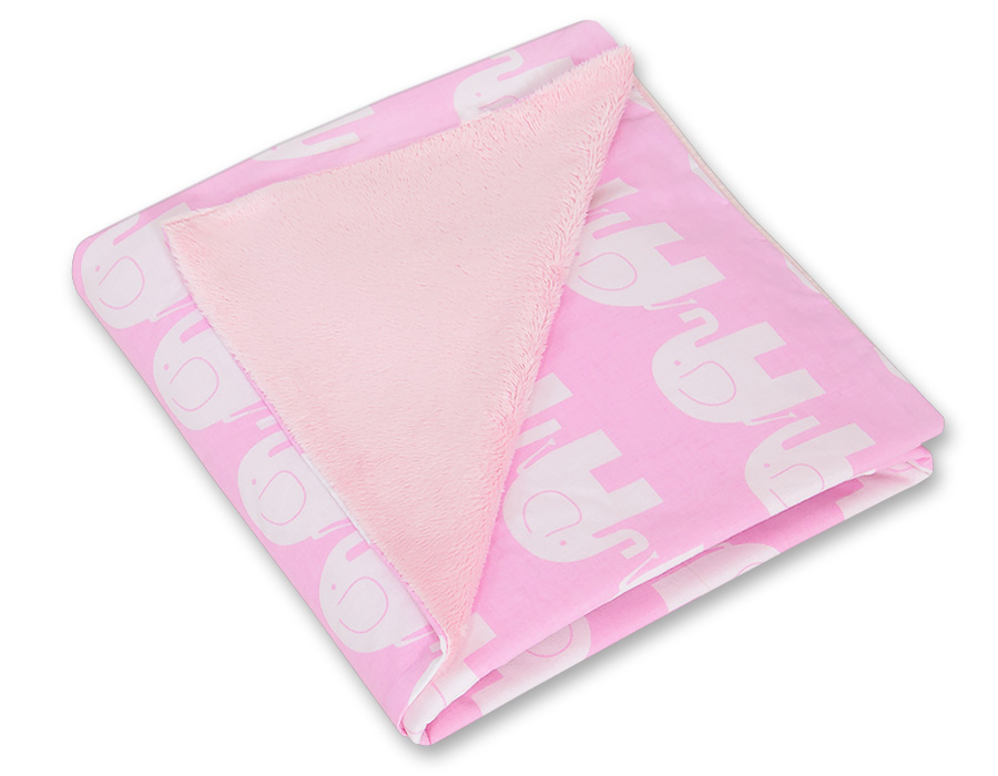 Duży otulacz dla niemowląt do fotelika nosidełka wózka dwustronny – Słonie różowe
