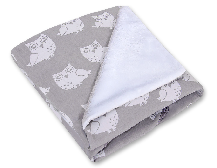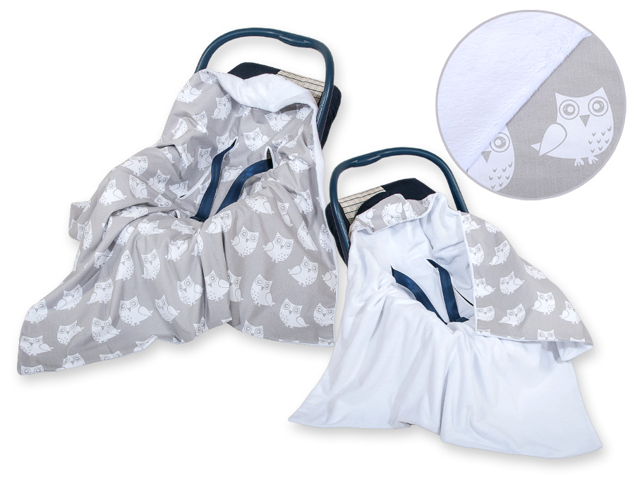 Duży otulacz dla niemowląt do fotelika nosidełka wózka dwustronny – Sowy szare