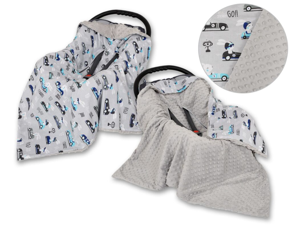Duży otulacz dla niemowląt do fotelika nosidełka wózka – dwustronny kocyk z bawełny i minky