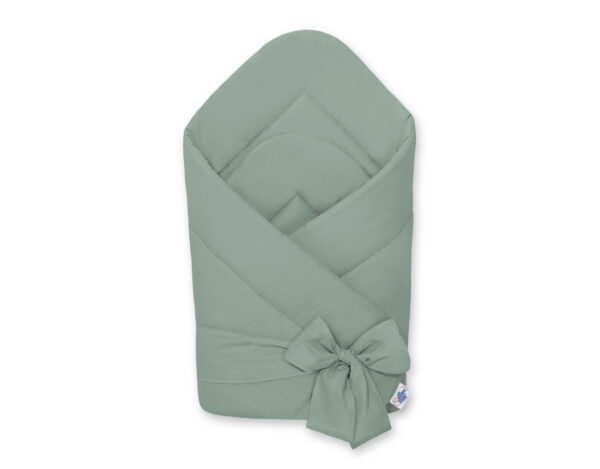 Dwustronny rożek dla niemowląt miękki bawełniany z wiązaniem – szałwia