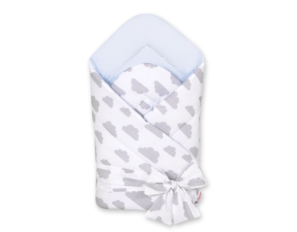Dwustronny rożek dla niemowląt miękki z wiązaniem – chmurki szare