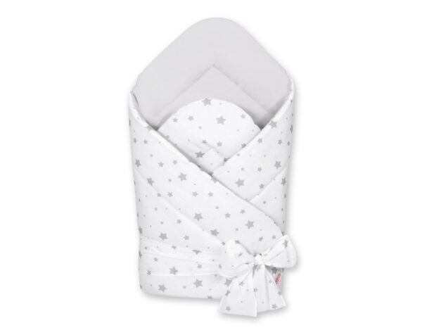 Dwustronny rożek dla niemowląt miękki z wiązaniem – mini gwiazdki szare na białym tle