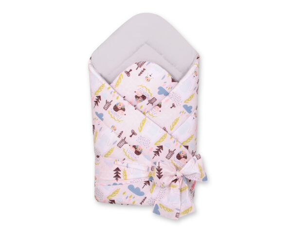 Dwustronny rożek dla niemowląt miękki z wiązaniem – misie i jeżyki różowe