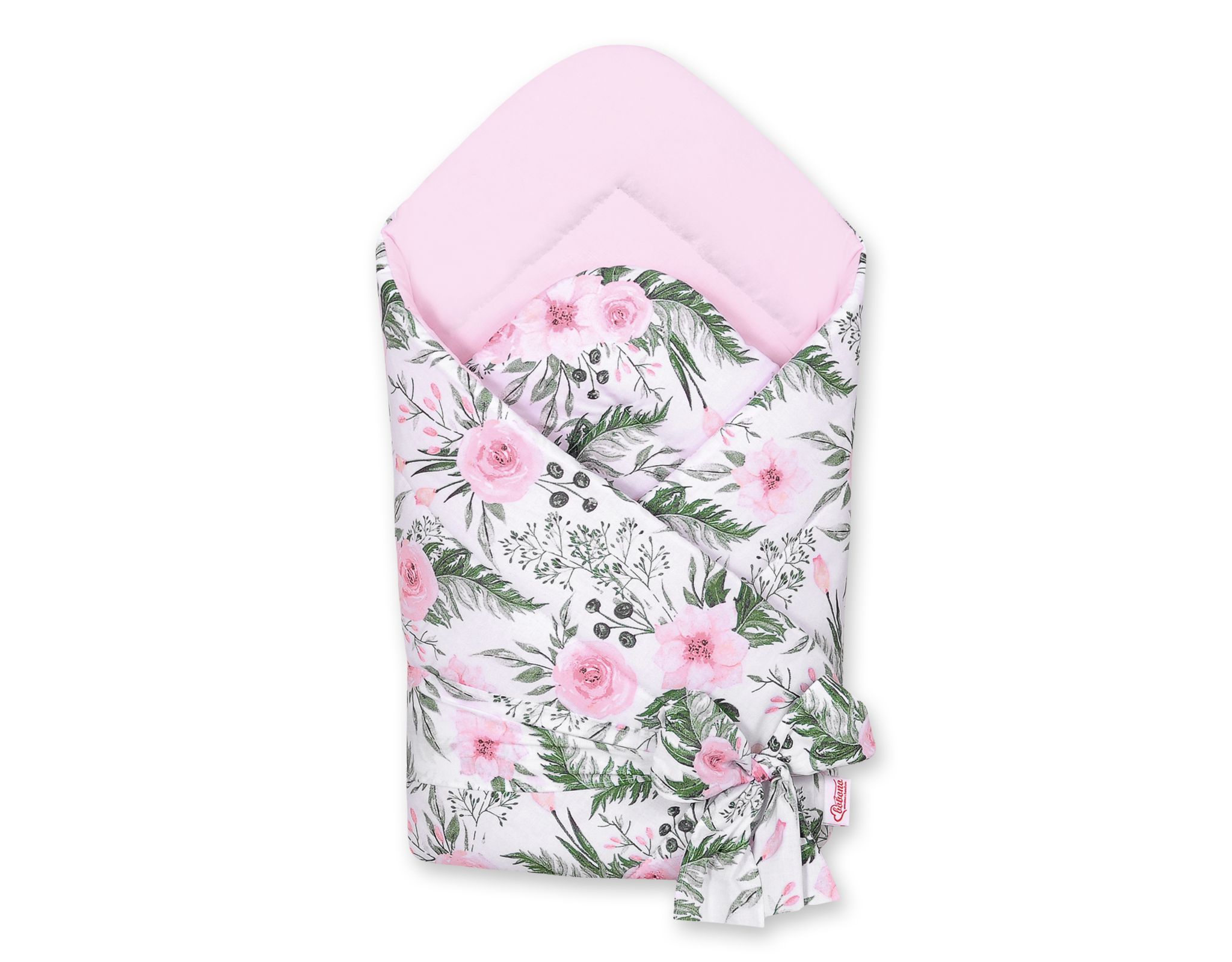Dwustronny rożek dla niemowląt miękki z wiązaniem – peonie różowe
