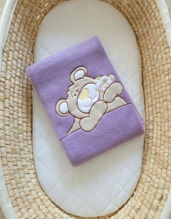 Kocyk polarowy dla niemowląt – Miś Barnaba fioletowy