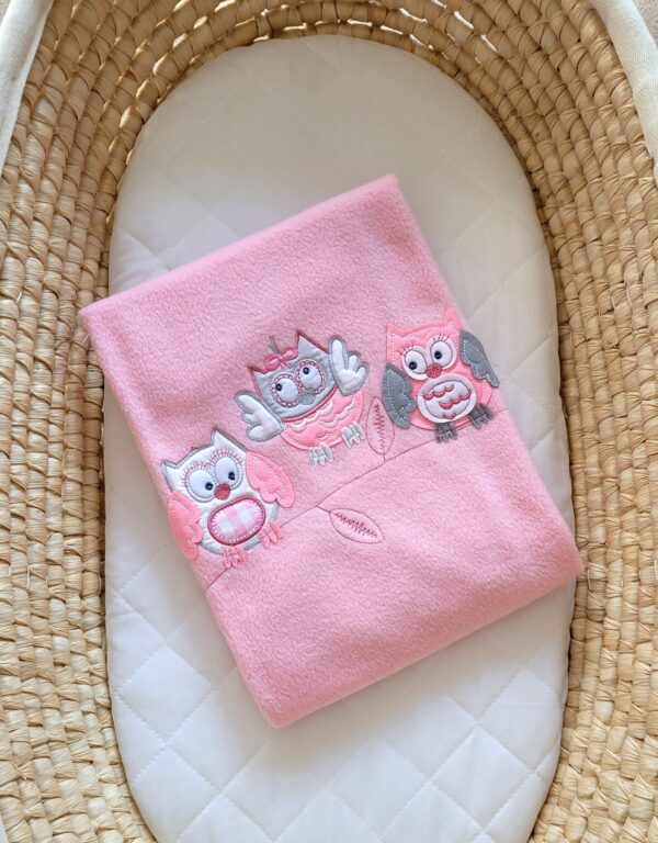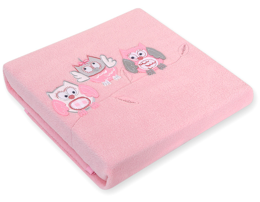 Kocyk polarowy dla niemowląt – Sowy Bigi Zibi & Adele- jasnoróżowy