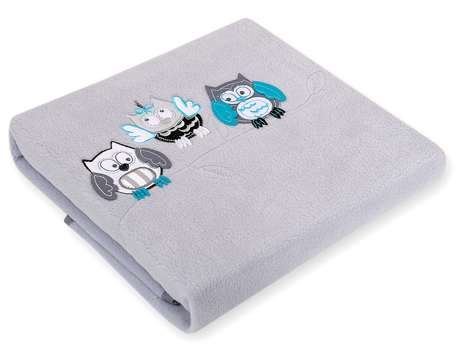 Kocyk polarowy dla niemowląt – Sowy Bigi Zibi & Adele- szaro-turkusowy