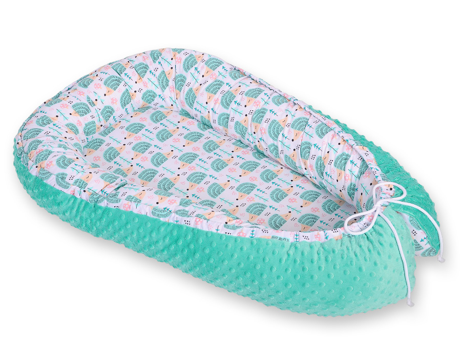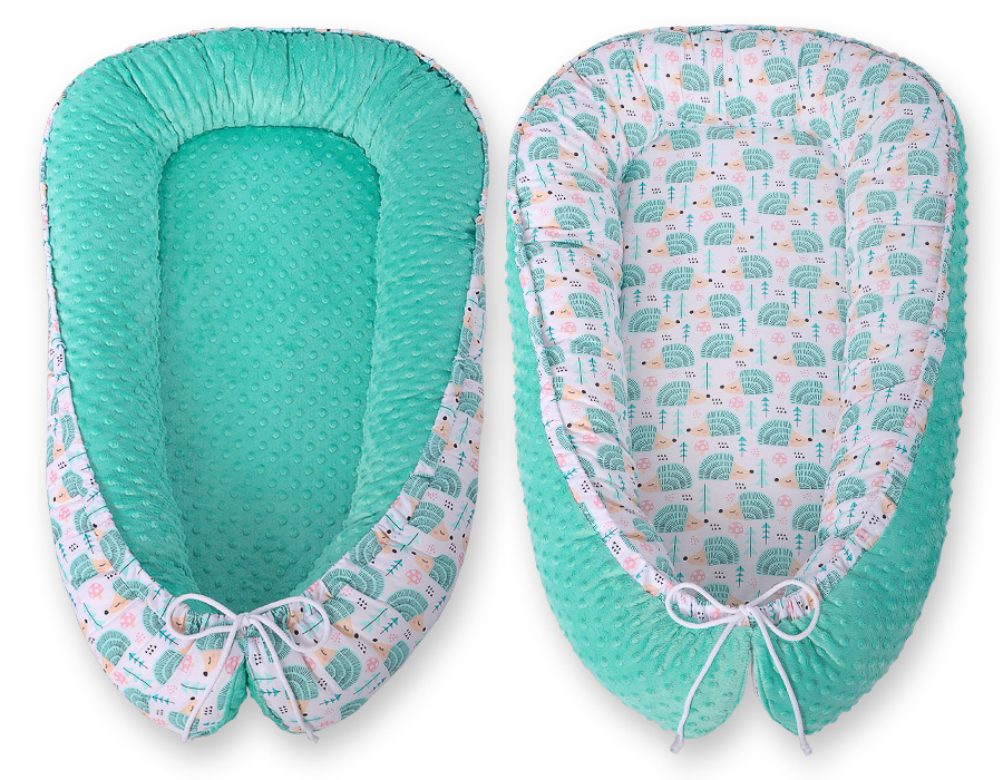 Kokon niemowlęcy dwustronny kojec otulacz Premium BOBONO minky- jeżyki miętowe