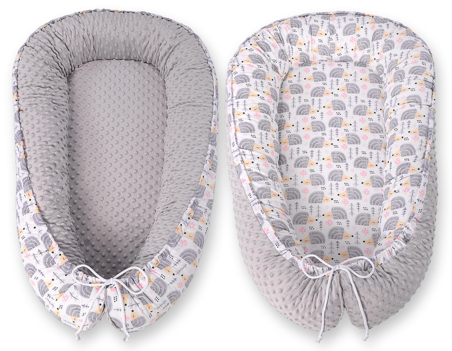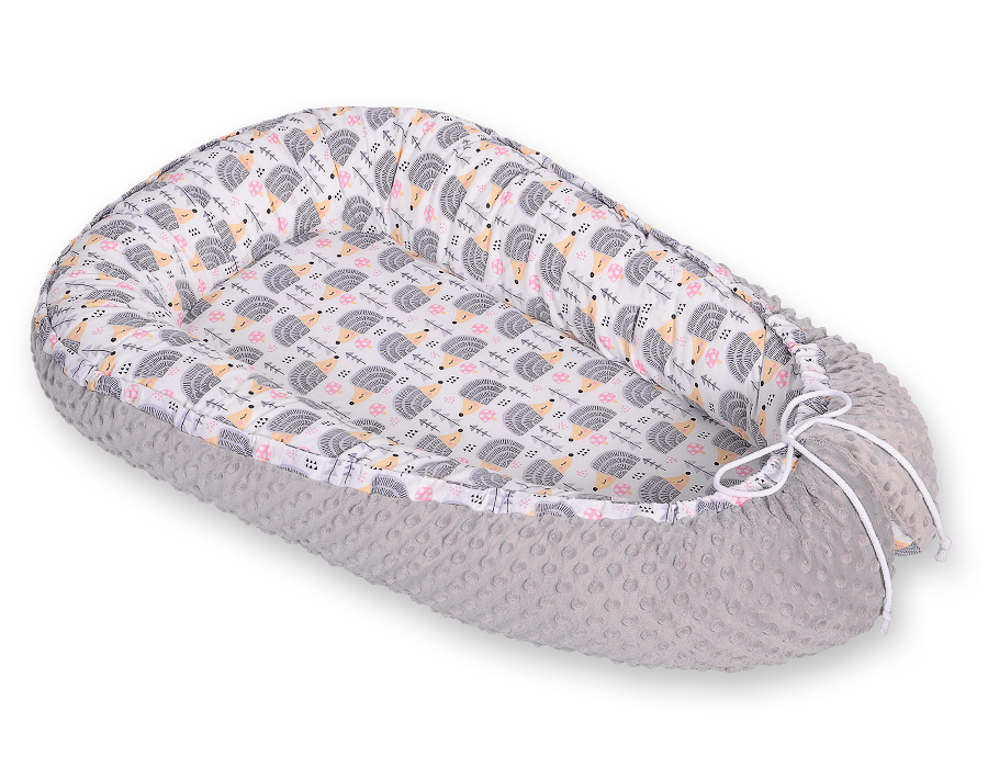 Kokon niemowlęcy dwustronny kojec otulacz Premium BOBONO minky- jeżyki szare