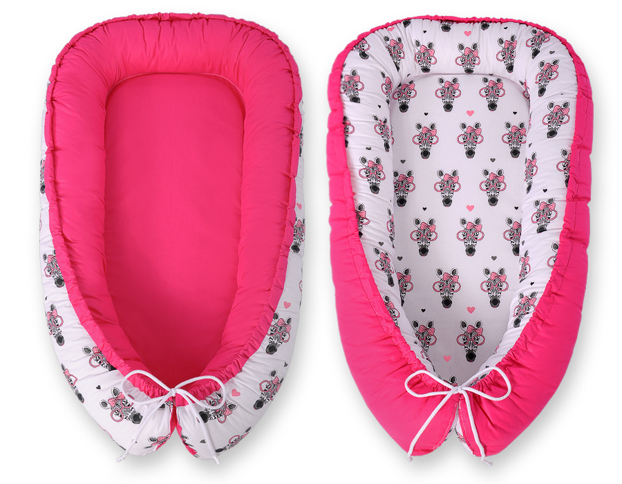 Kokon niemowlęcy dwustronny kojec otulacz Premium BOBONO- zebry różowe