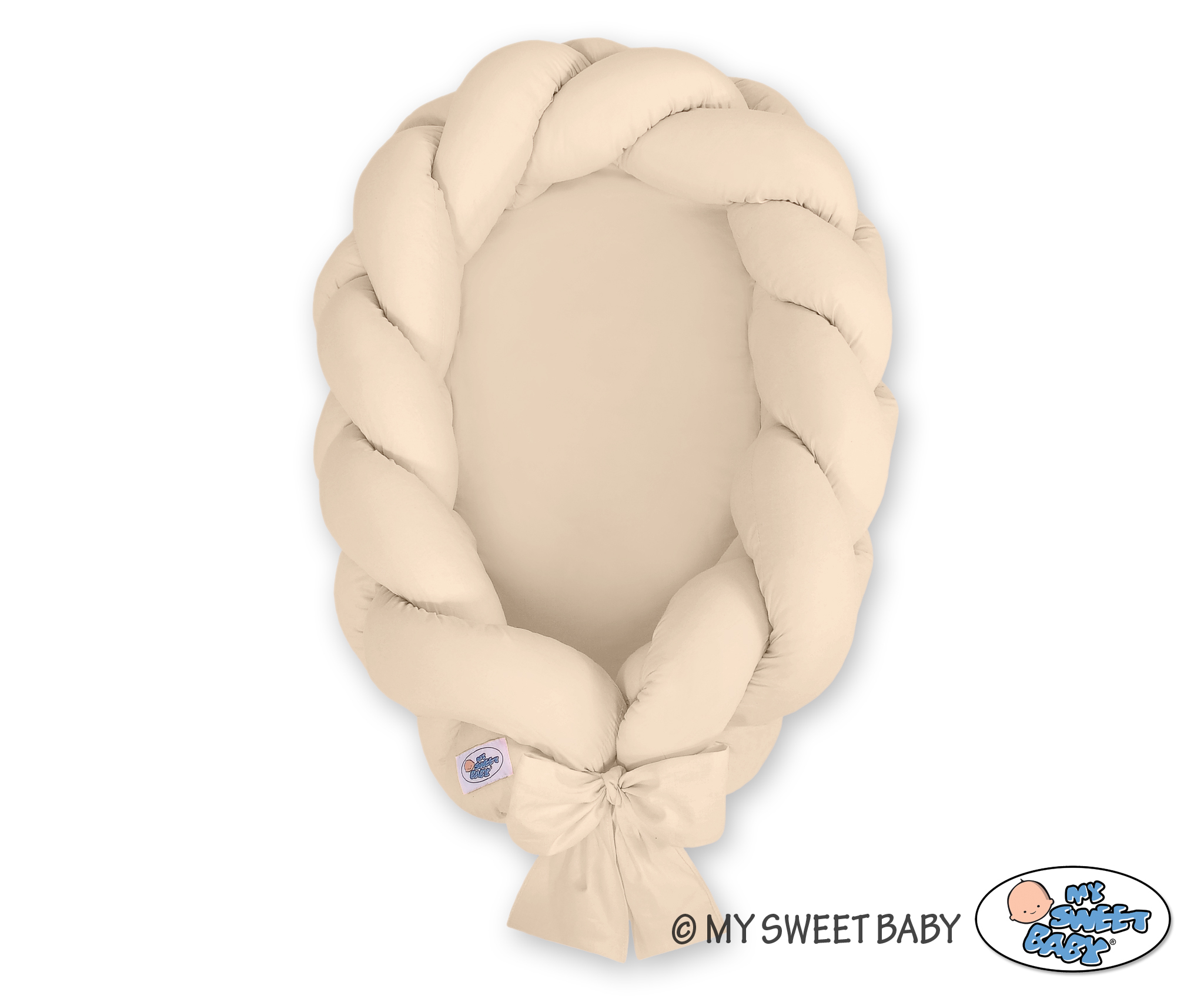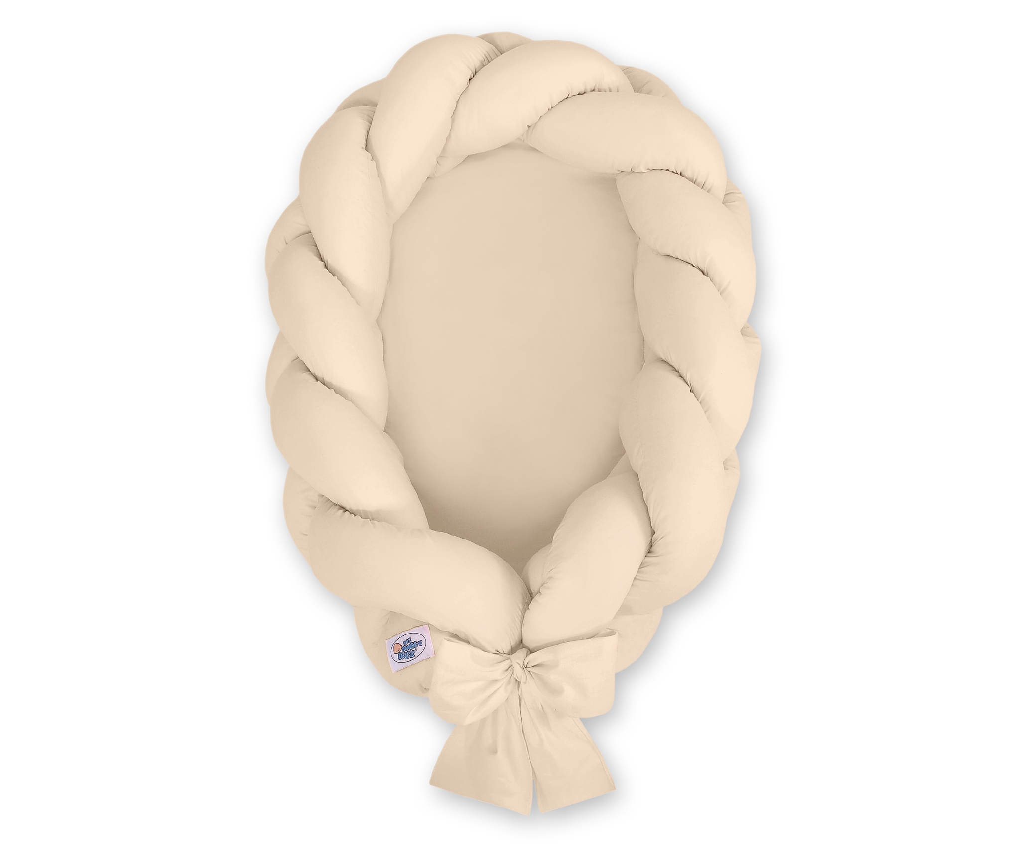 Pleciony warkocz przymocowany jest do materacyka specjalnymi troczkami, co pozwala łatwo uformować sobie gniazdko i położyć w nim Maluszka.