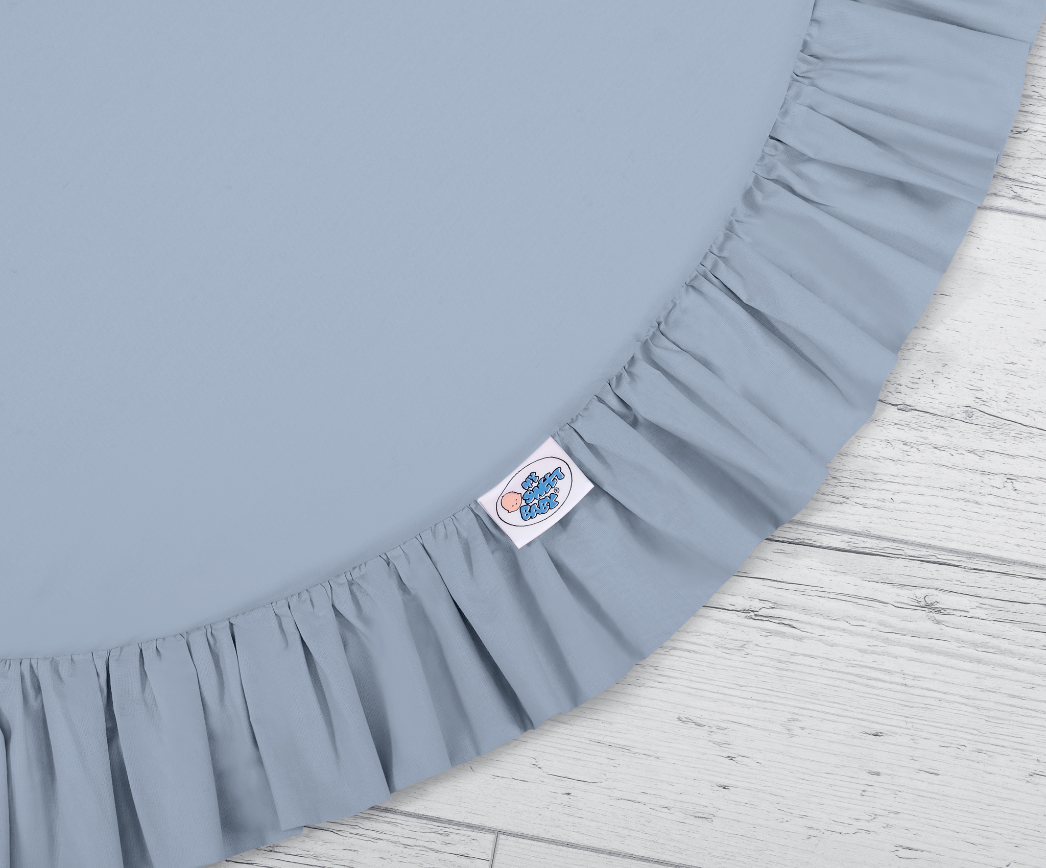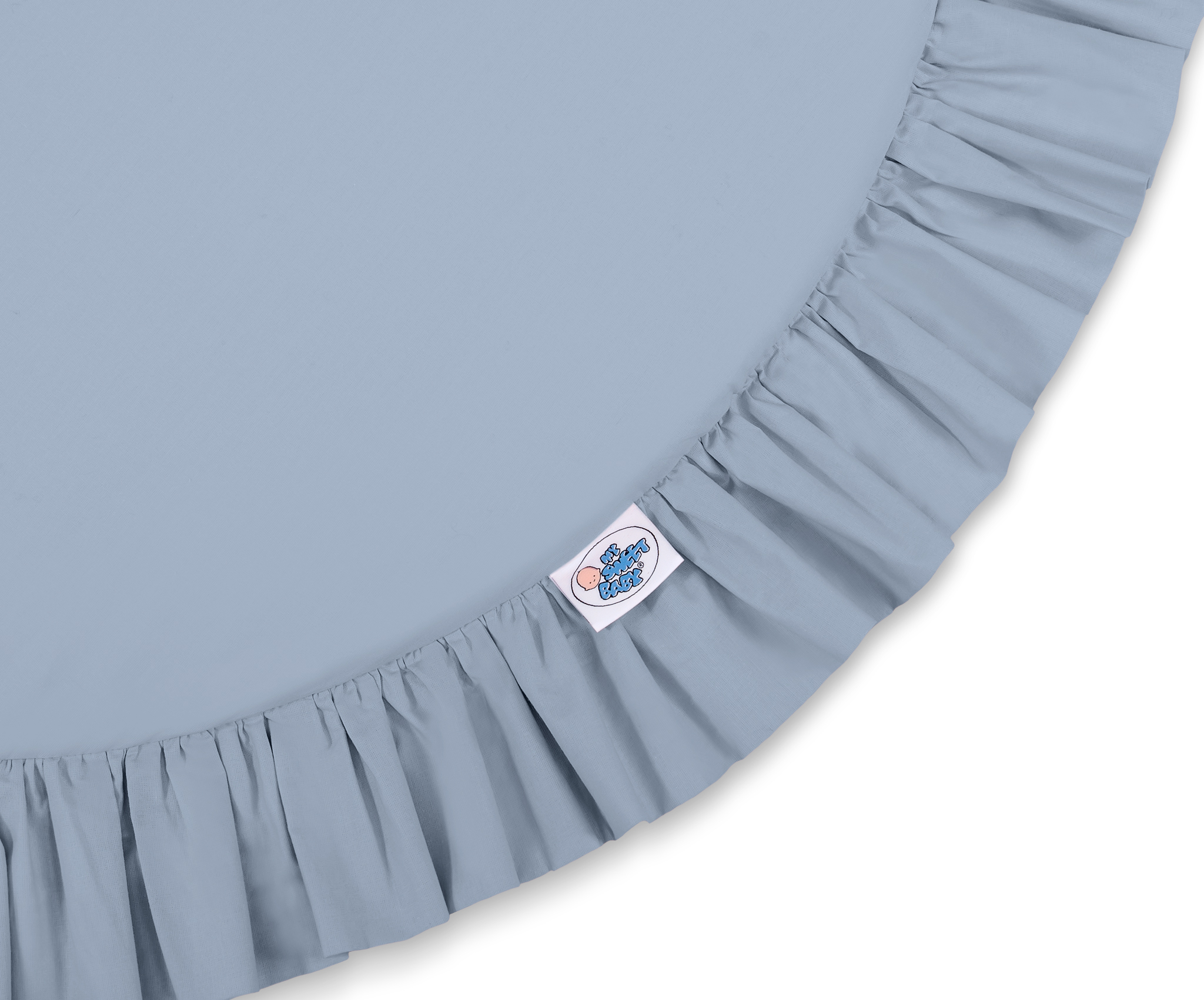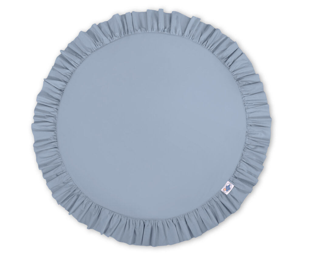 Okrągła mata z falbanką. Funkcjonalna i praktyczna. Doskonale sprawdzi się jako dywanik, mata do zabawy lub „podłoga” baldachimu. Już od pierwszych dni życia może służyć jako mata do leżenia na brzuszku. Posiada miękkie wypełnienie, które świetnie izoluje od twardej i zimnej podłogi. Okrągła mata to również świetne miejsce do zabawy i odpoczynku. Wykonana z tkaniny 100% bawełnianej, posiadającej atest Okotex. Mata jest rozbieralna, dzięki czemu łatwo wyprać sam pokrowiec. Wkładka maty wykonana jest z nowoczesnego antyalergicznego atestowanego surowca.
