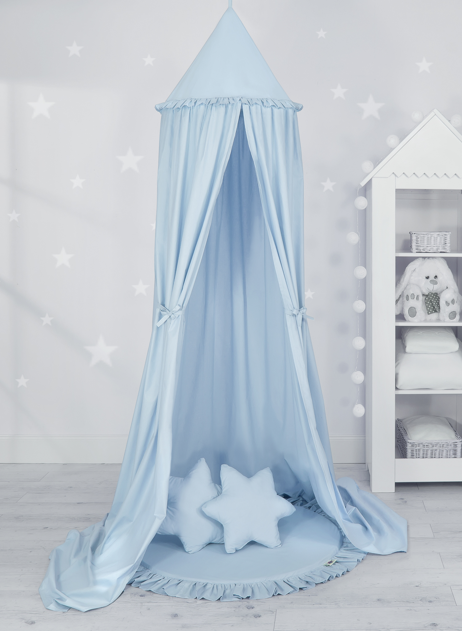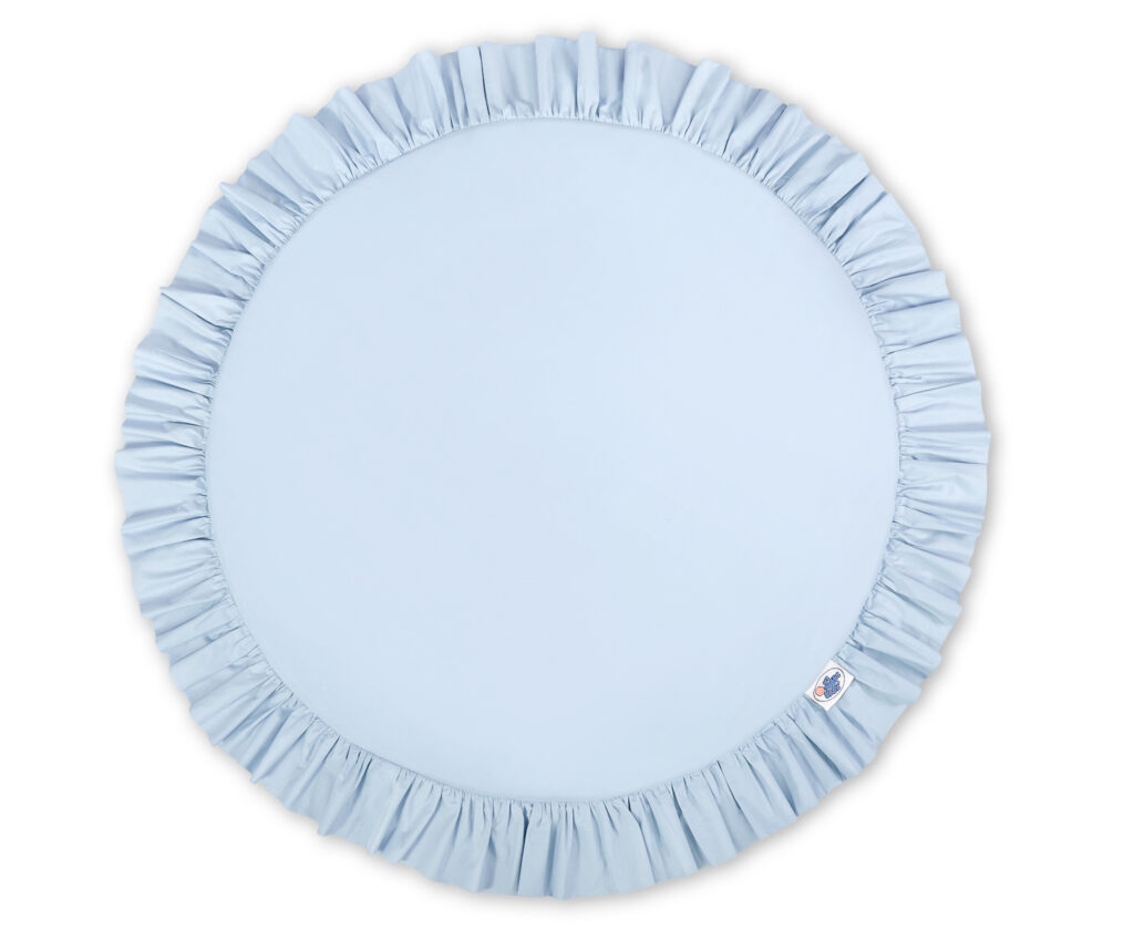 Okrągła mata z falbanką. Funkcjonalna i praktyczna. Doskonale sprawdzi się jako dywanik, mata do zabawy lub „podłoga” baldachimu. Już od pierwszych dni życia może służyć jako mata do leżenia na brzuszku. Posiada miękkie wypełnienie, które świetnie izoluje od twardej i zimnej podłogi. Okrągła mata to również świetne miejsce do zabawy i odpoczynku. Wykonana z tkaniny 100% bawełnianej, posiadającej atest Okotex. Mata jest rozbieralna, dzięki czemu łatwo wyprać sam pokrowiec. Wkładka maty wykonana jest z nowoczesnego antyalergicznego atestowanego surowca.