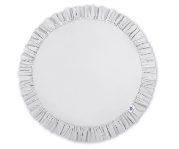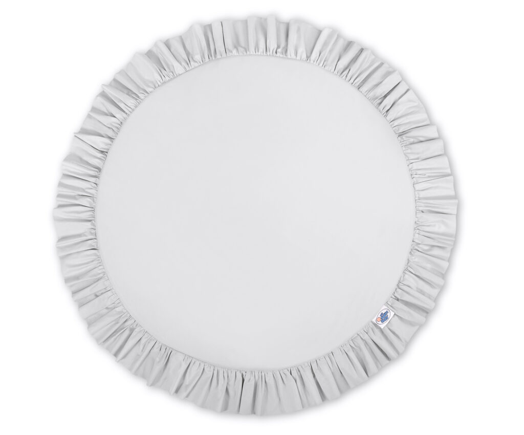 Okrągła mata z falbanką. Funkcjonalna i praktyczna. Doskonale sprawdzi się jako dywanik, mata do zabawy lub „podłoga” baldachimu. Już od pierwszych dni życia może służyć jako mata do leżenia na brzuszku. Posiada miękkie wypełnienie, które świetnie izoluje od twardej i zimnej podłogi. Okrągła mata to również świetne miejsce do zabawy i odpoczynku. Wykonana z tkaniny 100% bawełnianej, posiadającej atest Okotex. Mata jest rozbieralna, dzięki czemu łatwo wyprać sam pokrowiec. Wkładka maty wykonana jest z nowoczesnego antyalergicznego atestowanego surowca.