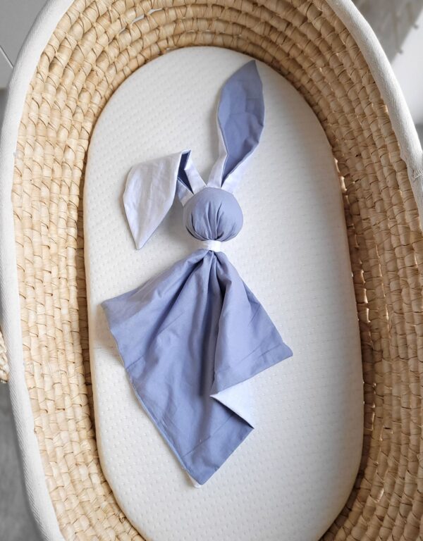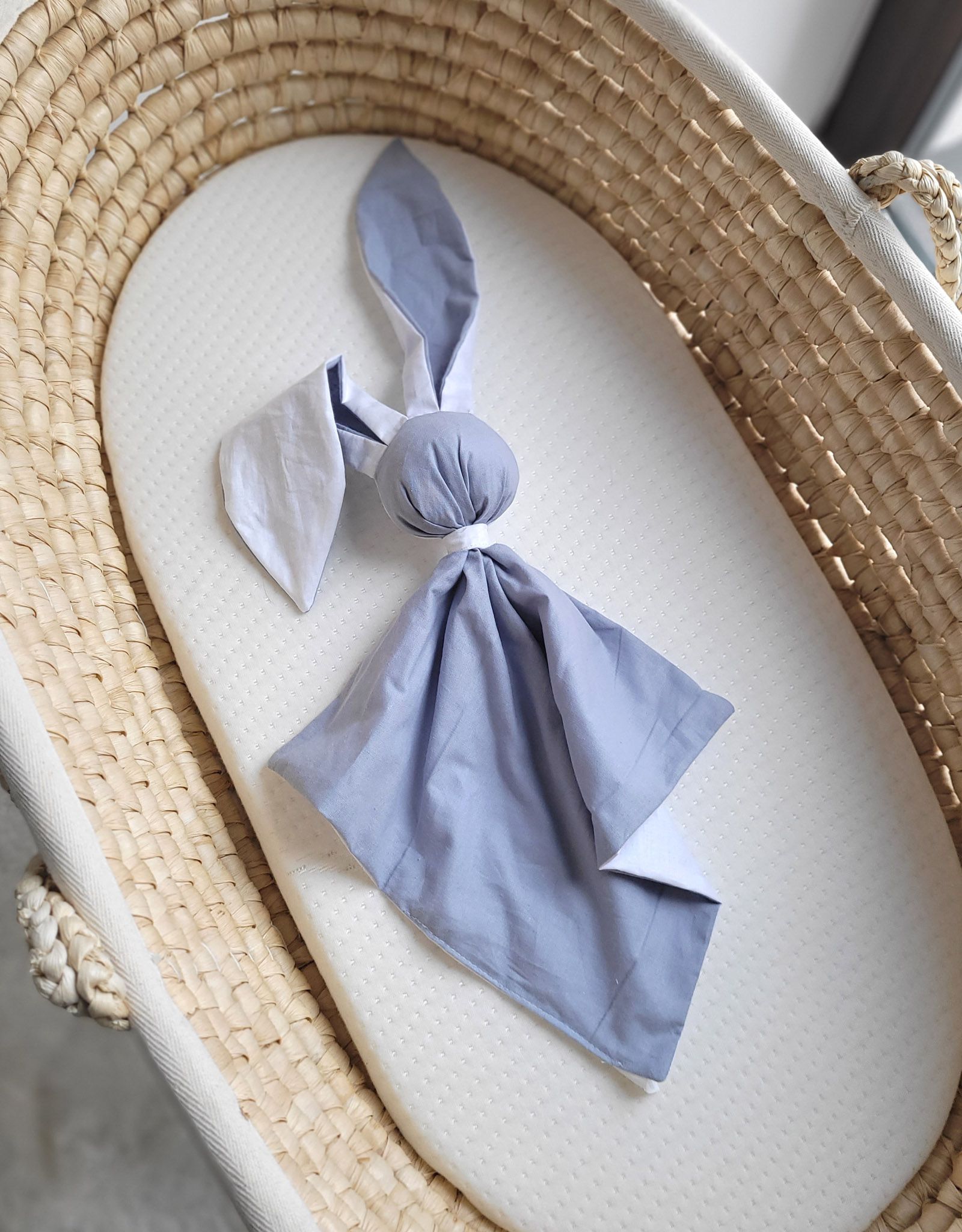 Miękka przytulanka kocyk króliczek z bawełny – Brudny niebieski/ biały