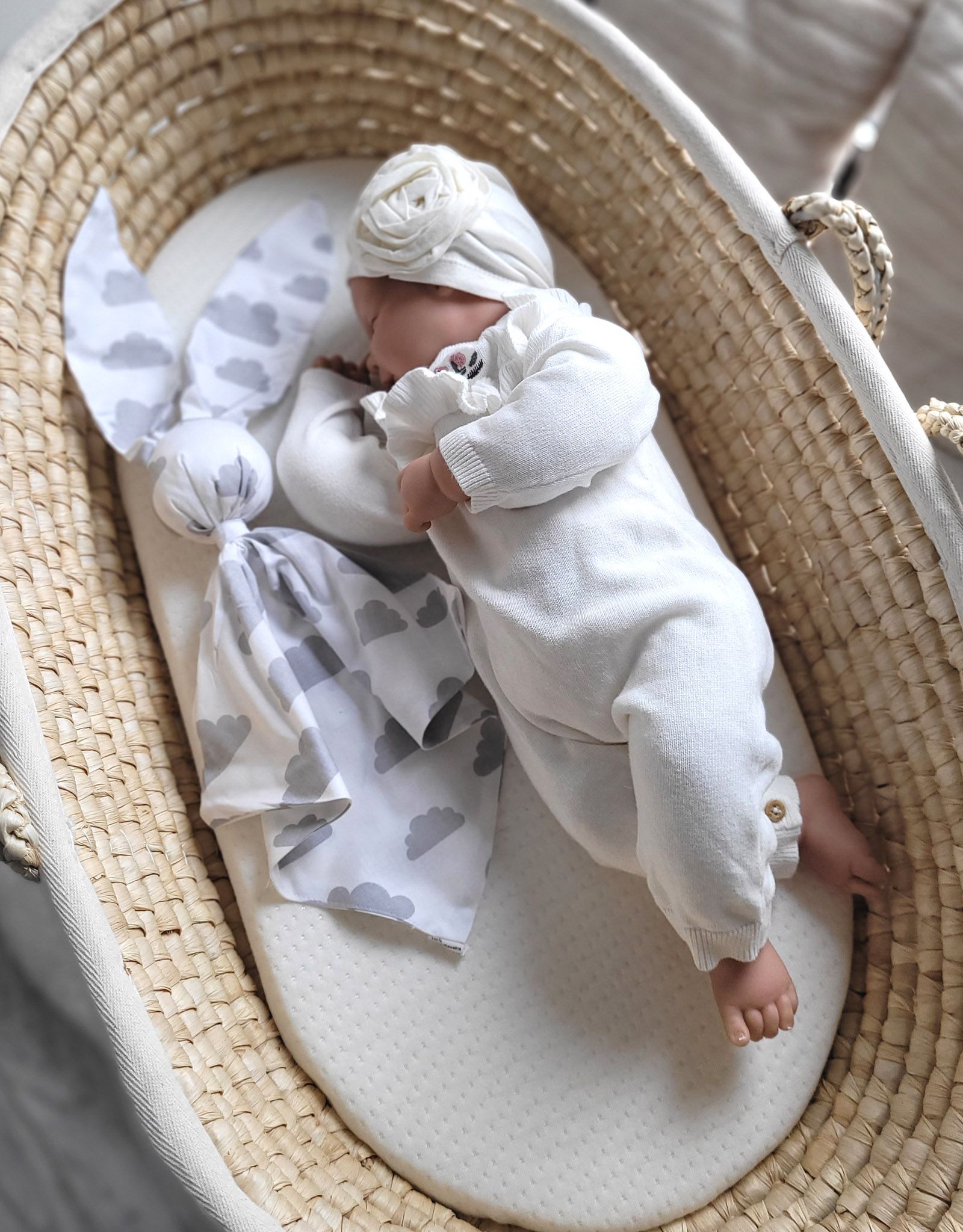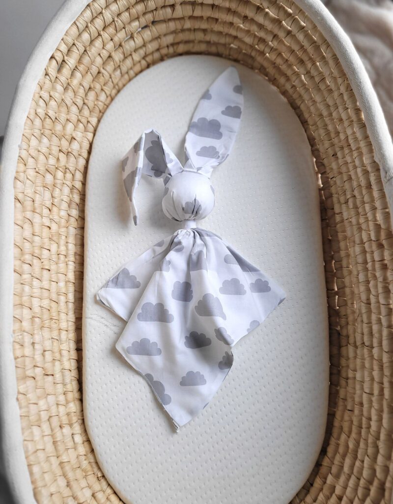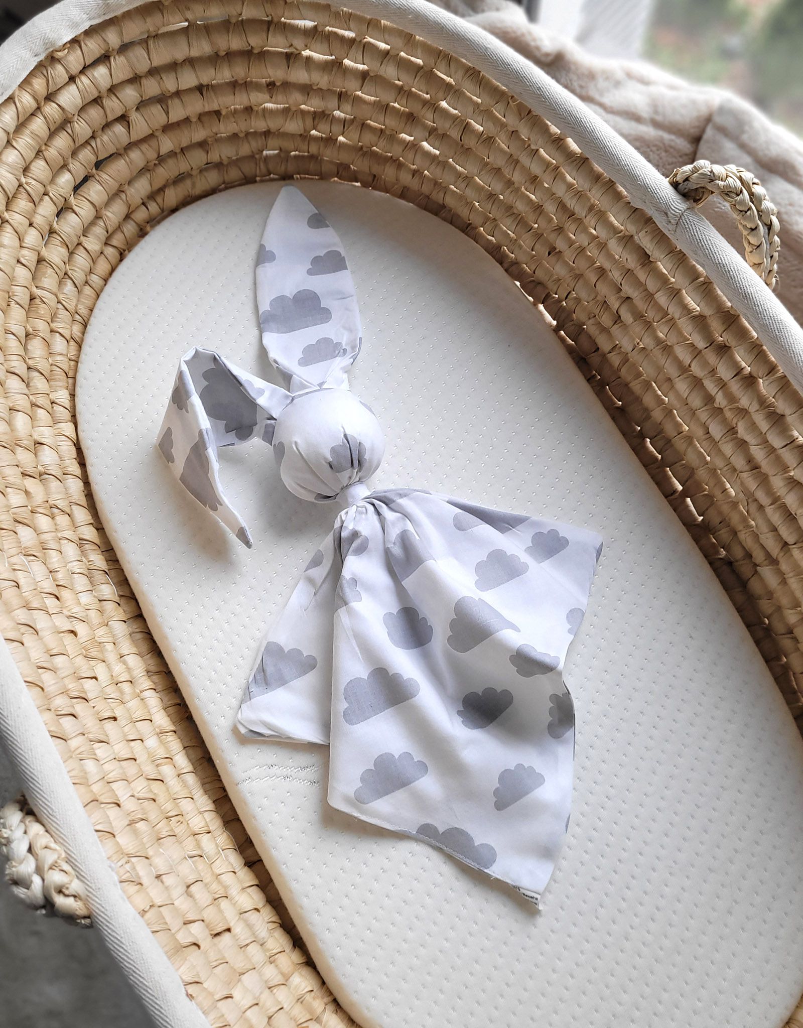 Miękka przytulanka kocyk króliczek z bawełny – Chmurki szare