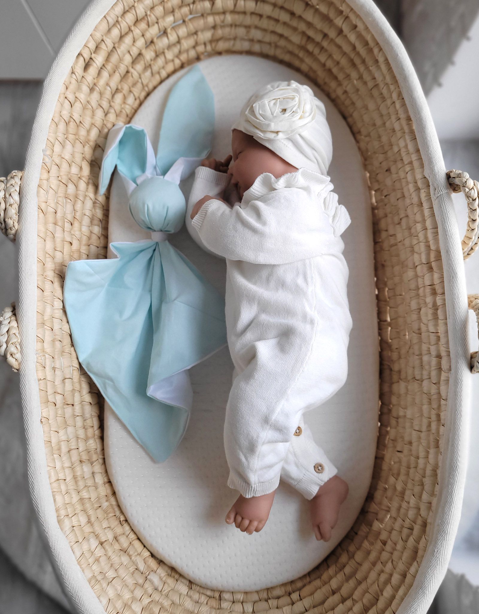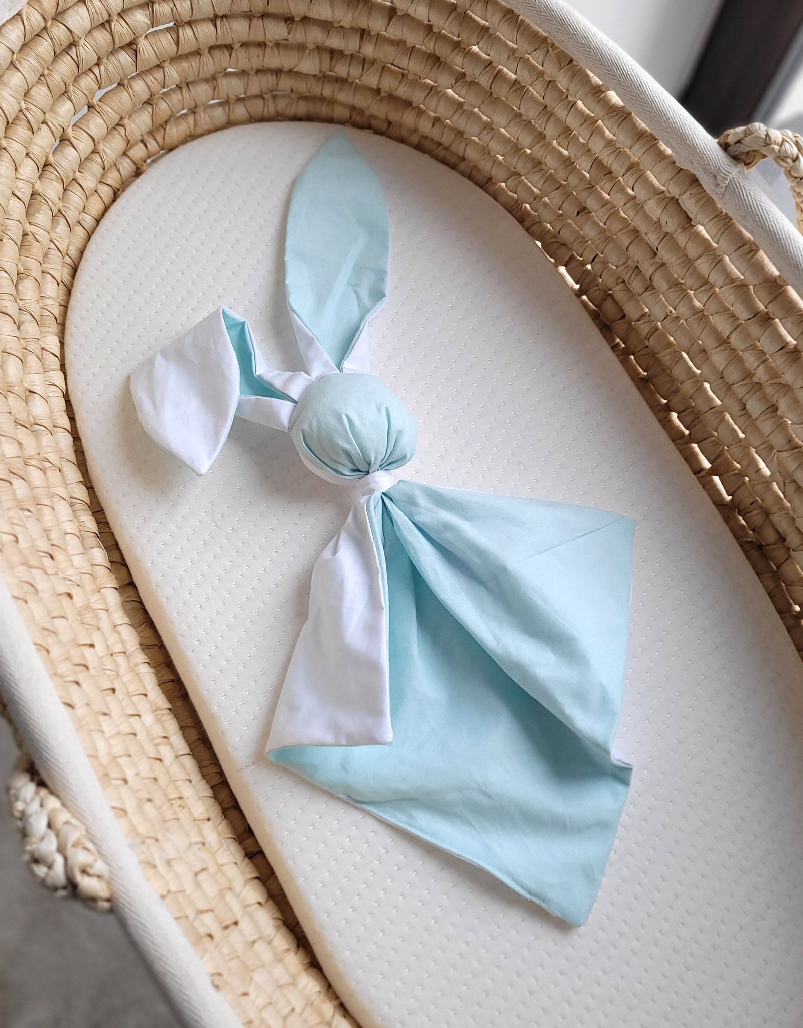 Miękka przytulanka kocyk króliczek z bawełny – Miętowo/ biały