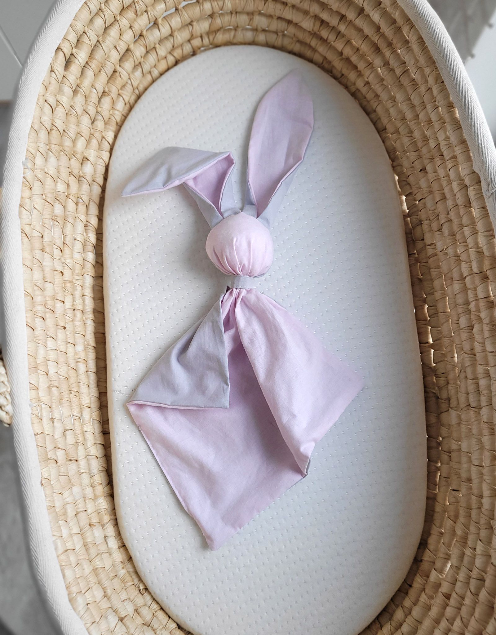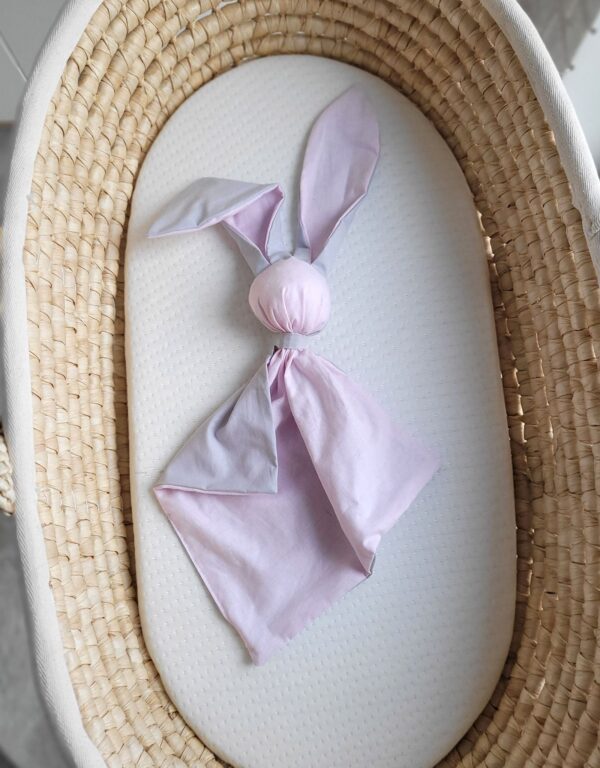 Miękka przytulanka kocyk króliczek z bawełny – Różowo/ szary