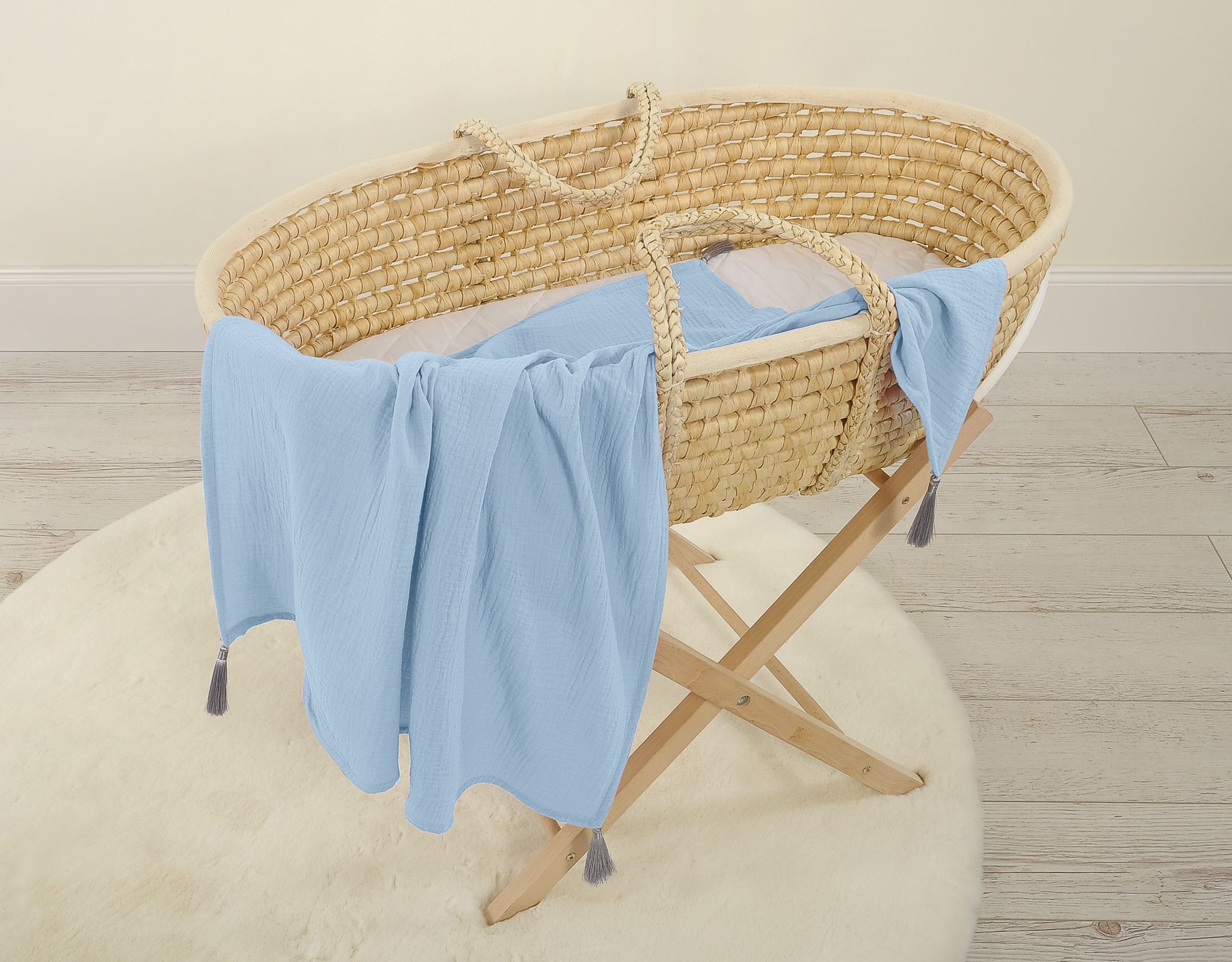 Lekki muślinowy kocyk dla niemowląt. Wykonany z trwałej 100% atestowanej bawełny – muślinu kreszowanego. Muślin jest miły i przyjemny w dotyku. Nie podrażnia delikatnej skóry dziecka. Przy tym jest wyjątkowo łatwy w użytkowaniu.