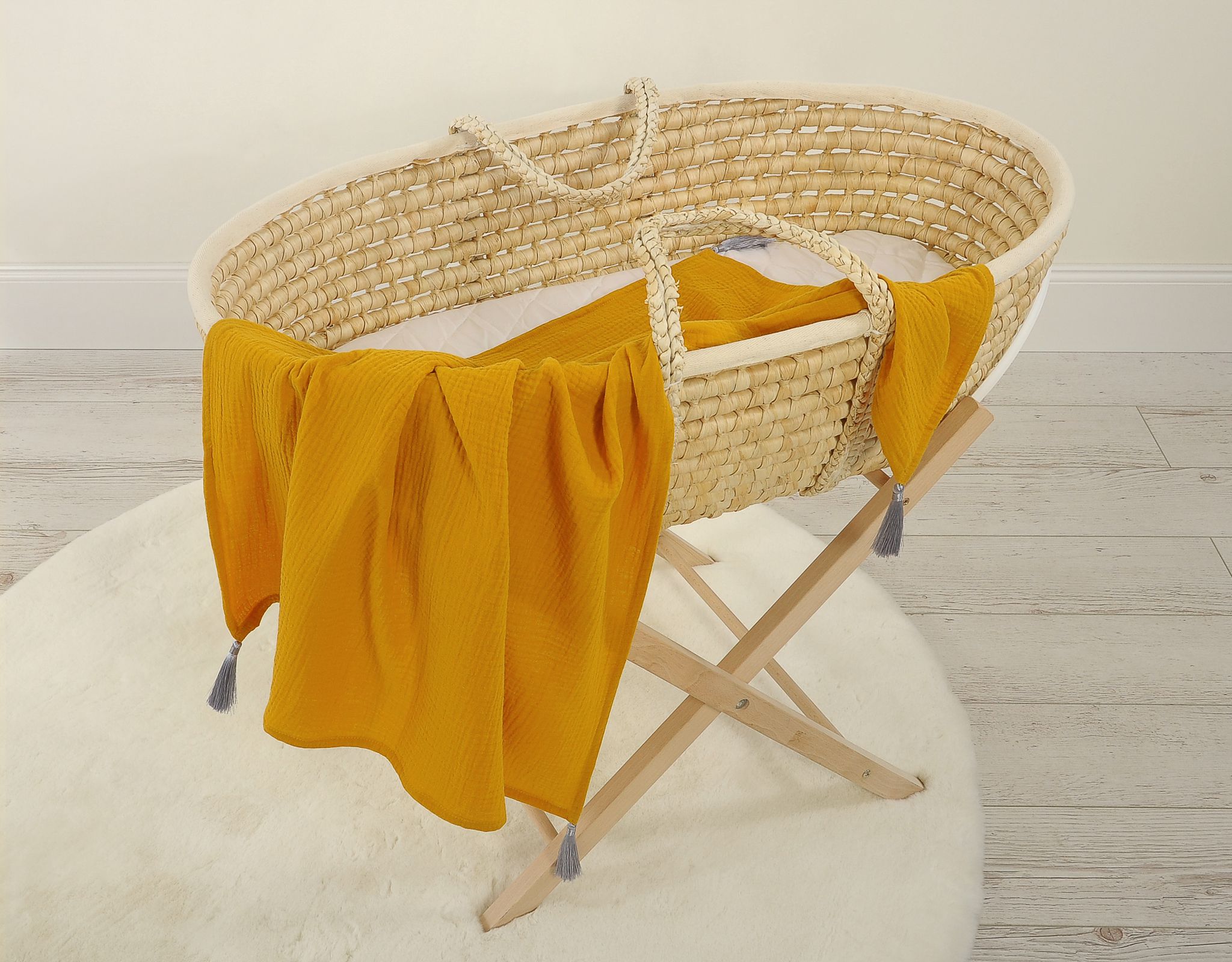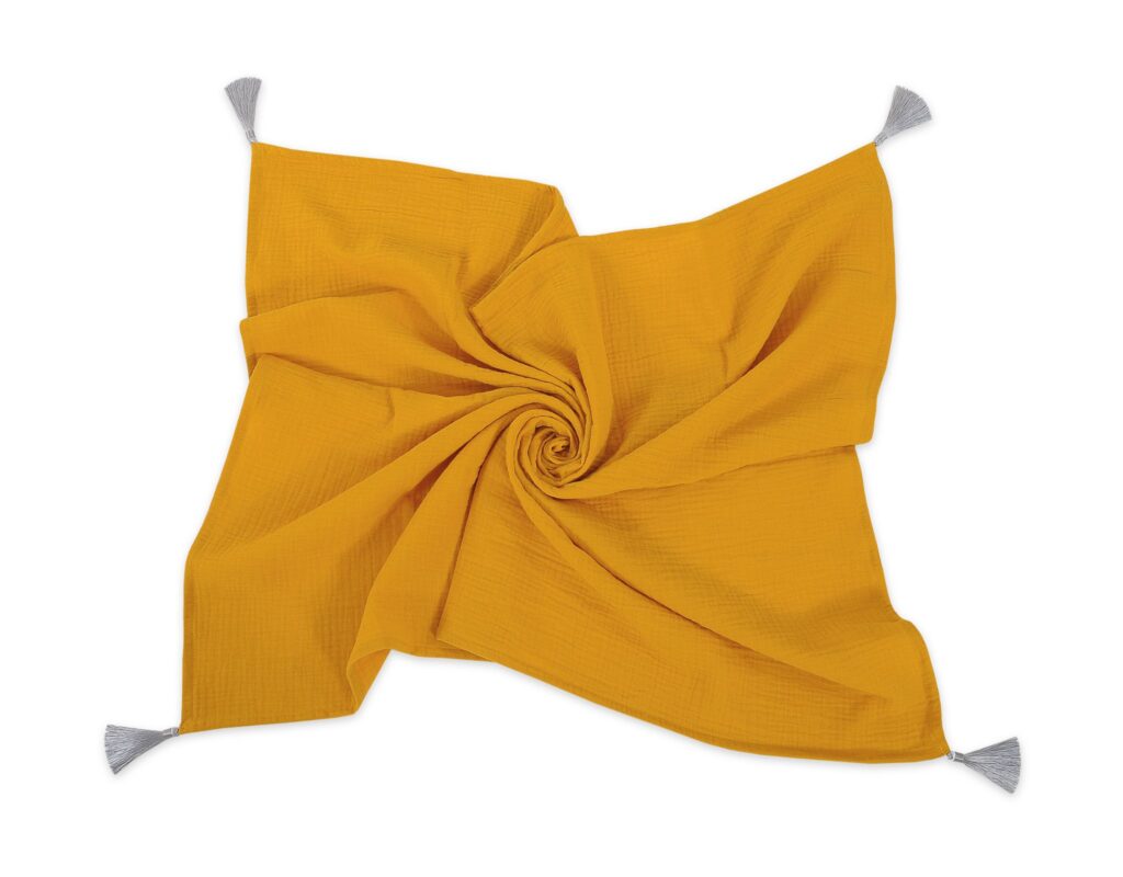 Muślinowy kocyk dla niemowląt z chwostami – musztardowy