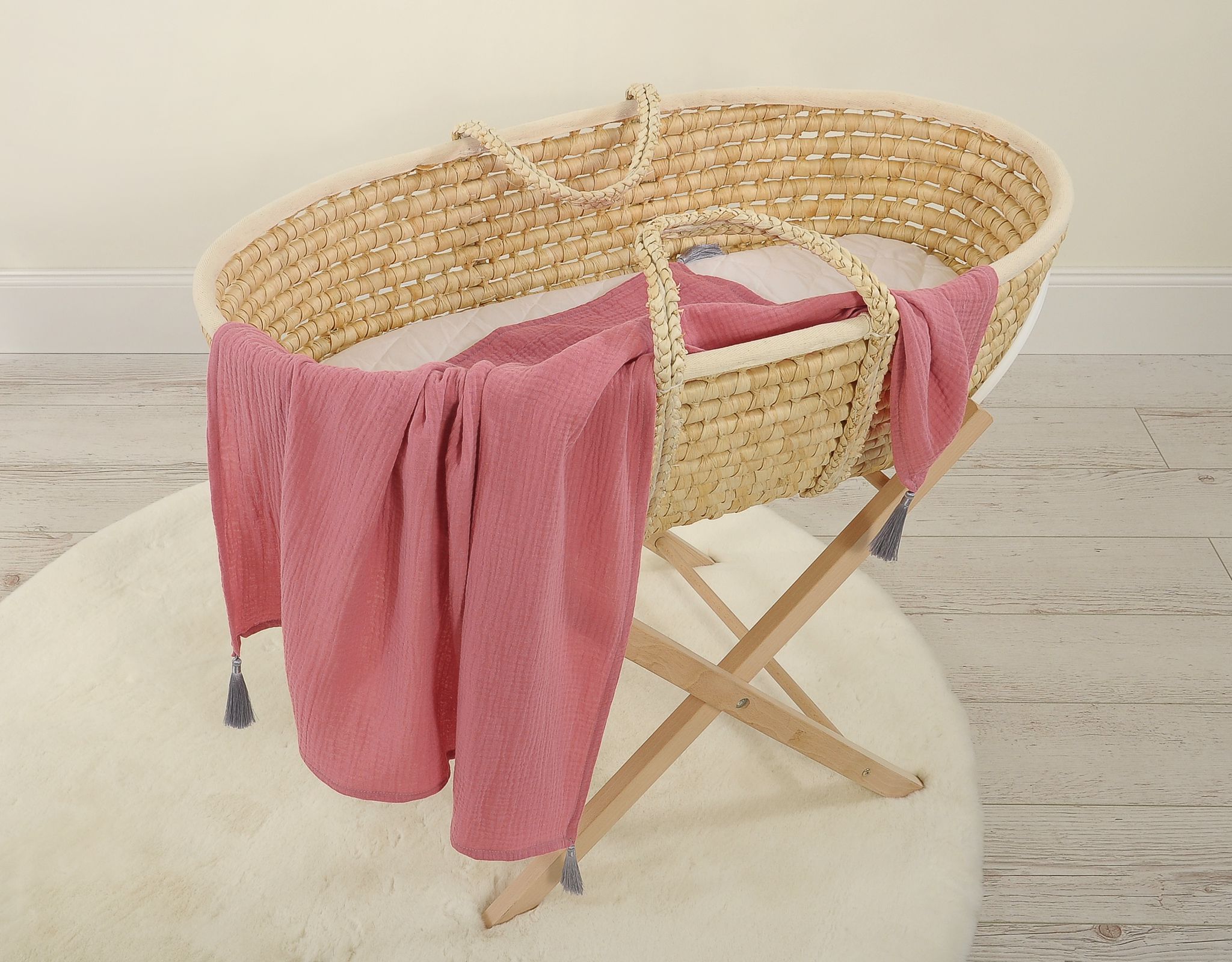 Muślinowy kocyk dla niemowląt z chwostami – róż retro