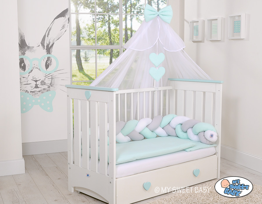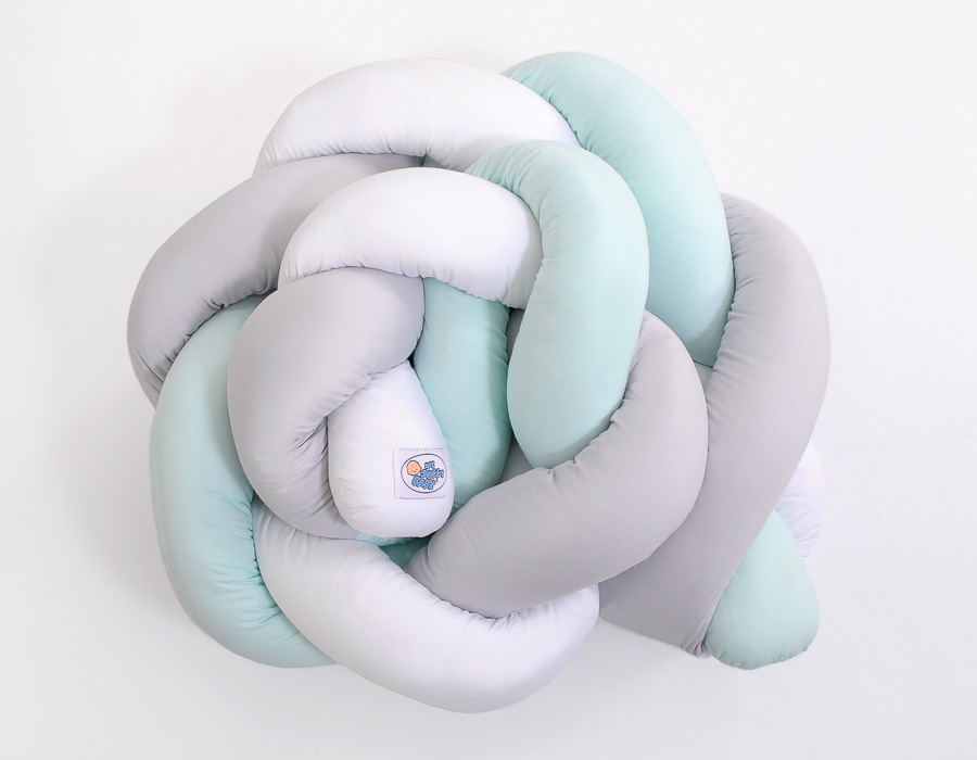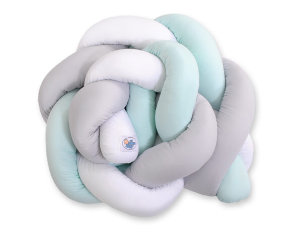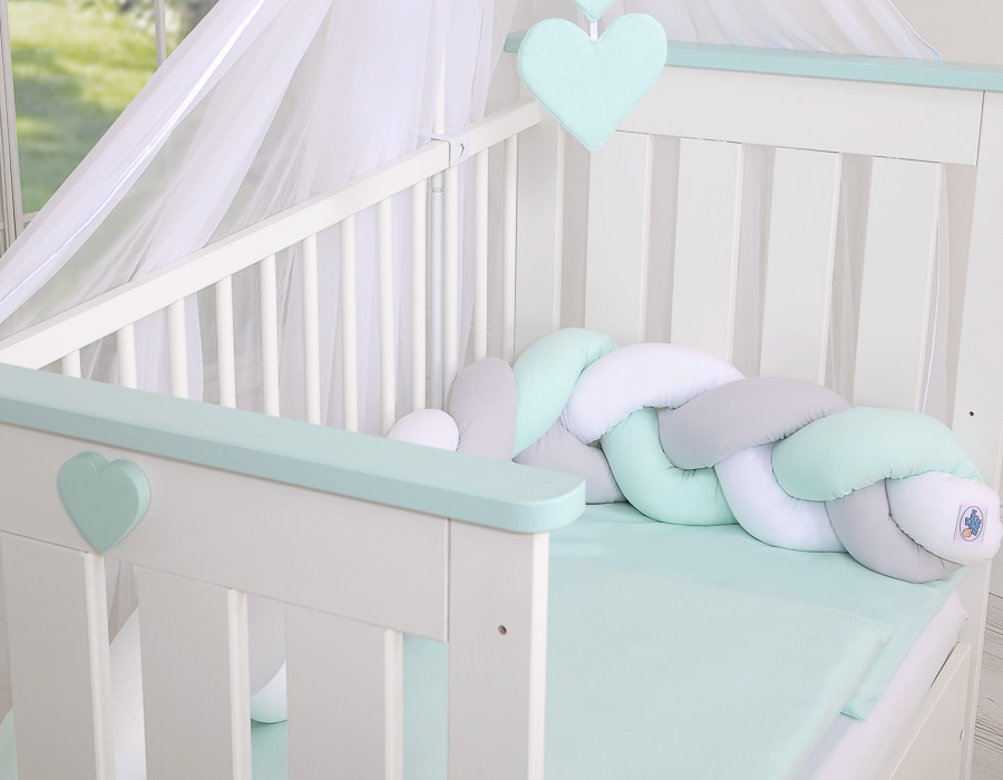 Ochraniacz warkocz pleciony do łóżeczka – biało-szaro-miętowy