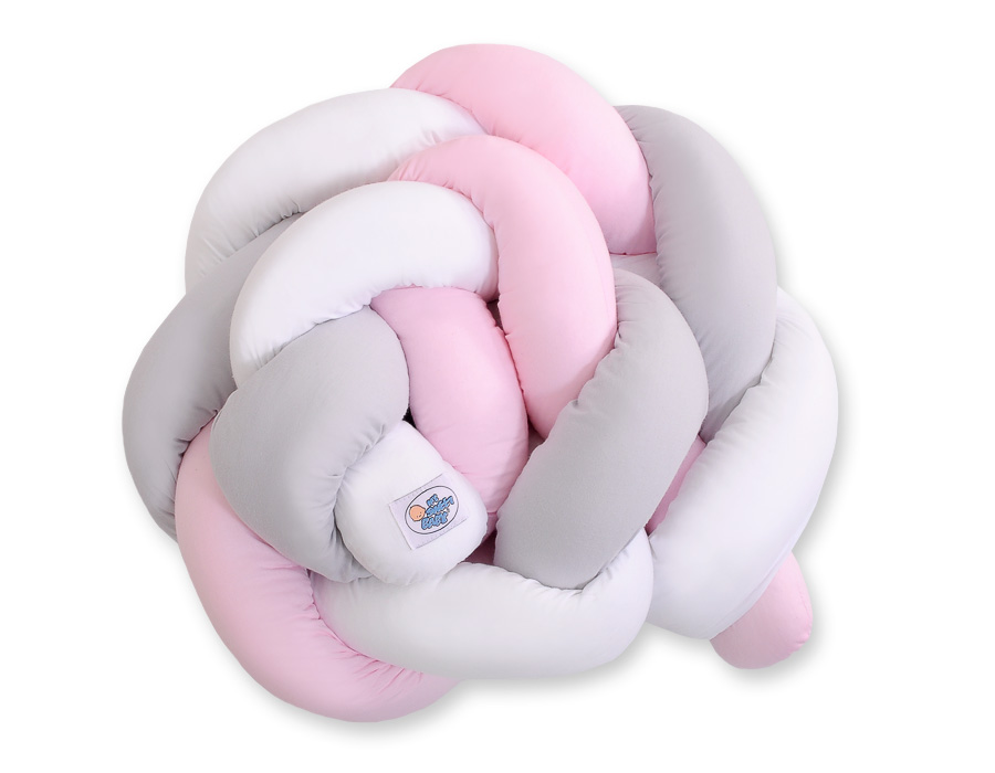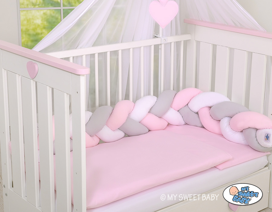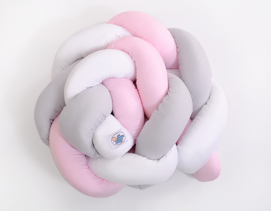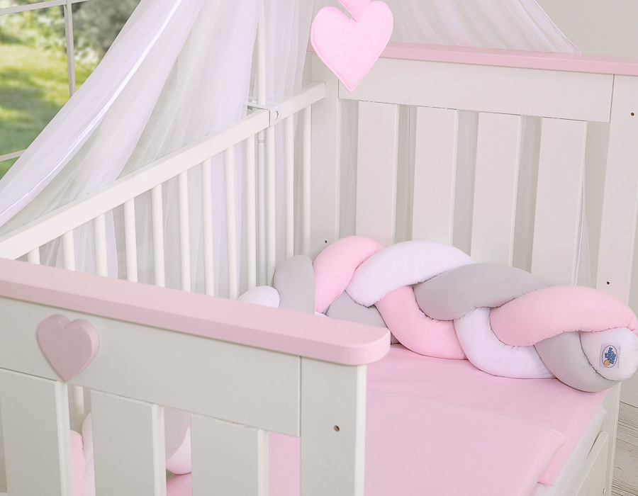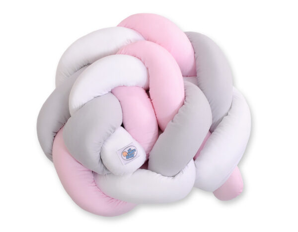 Ochraniacz warkocz pleciony do łóżeczka – biało-szaro-różowy