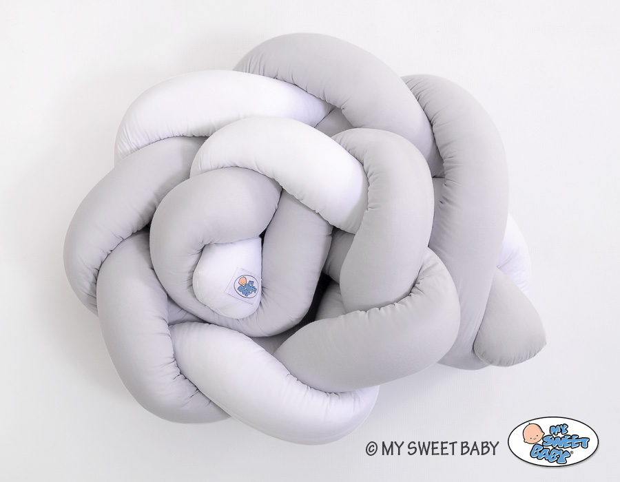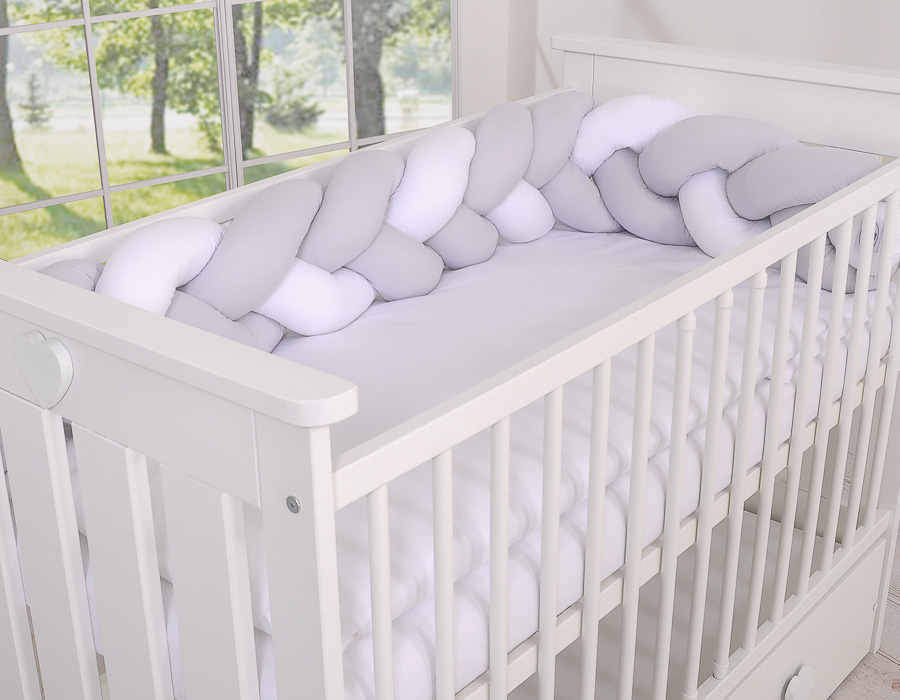 Ochraniacz warkocz pleciony do łóżeczka – biało szary