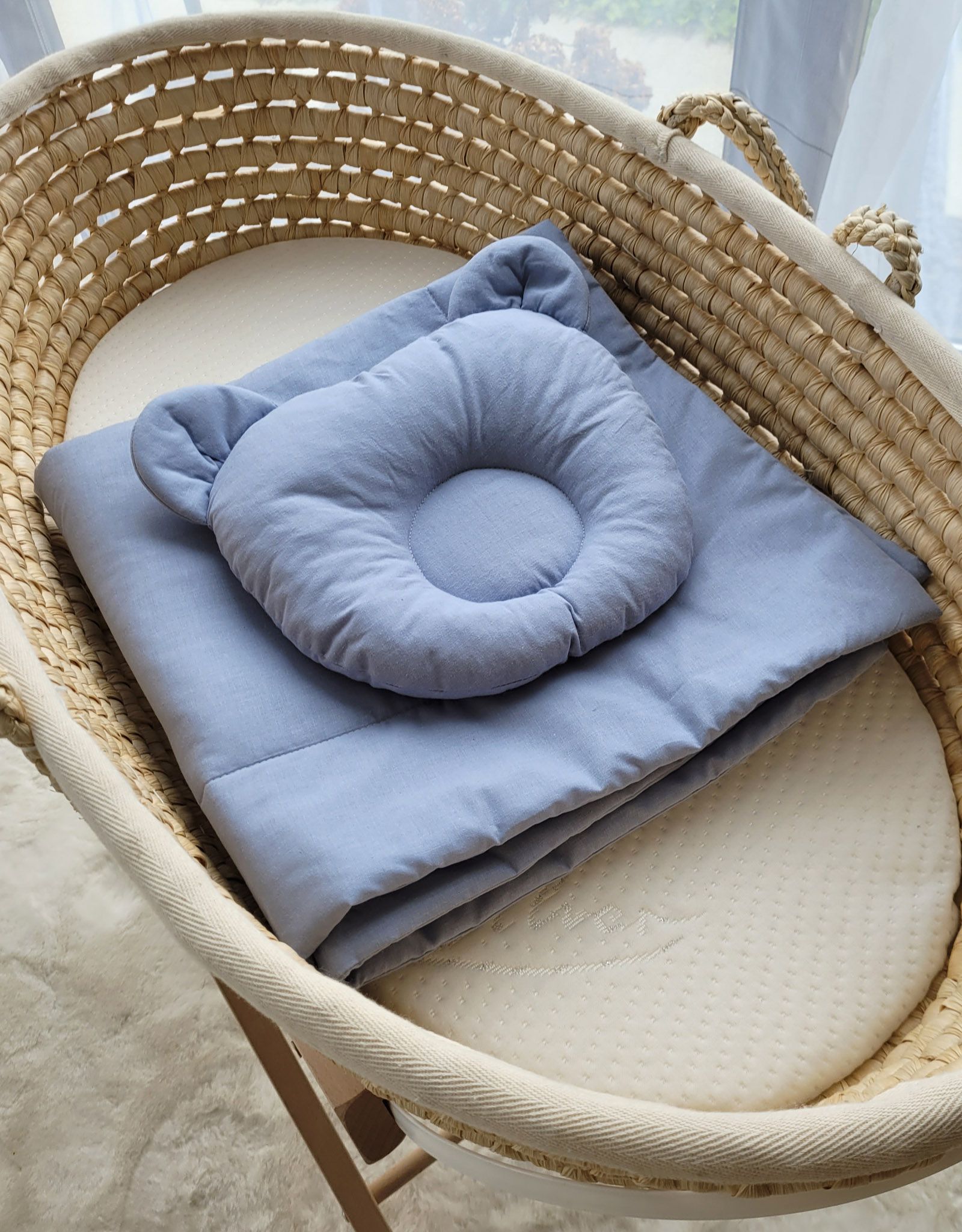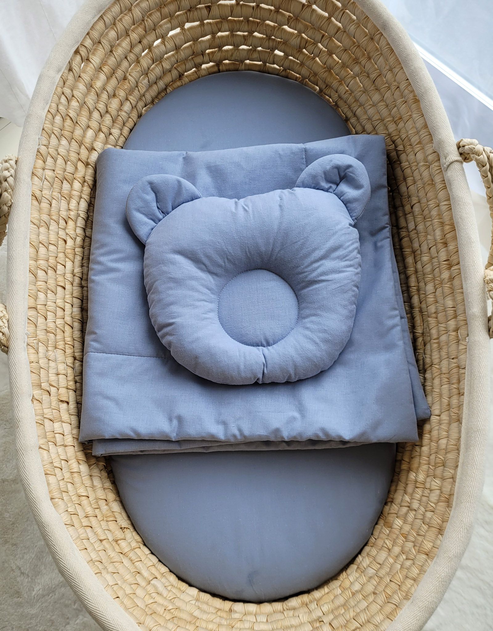 Pościel dla niemowląt z wypełnieniem kołderka i poduszka profilowana Miś – 2 cz. – brudny niebieski