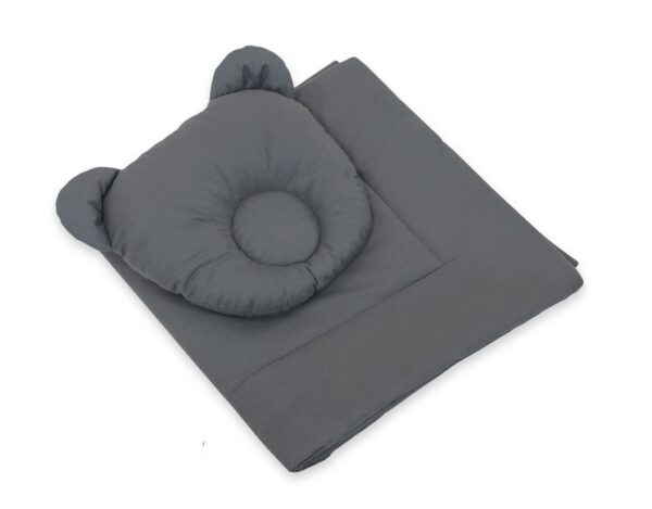 Pościel dla niemowląt z wypełnieniem kołderka i poduszka profilowana Miś – zestaw 2cz. – antracyt