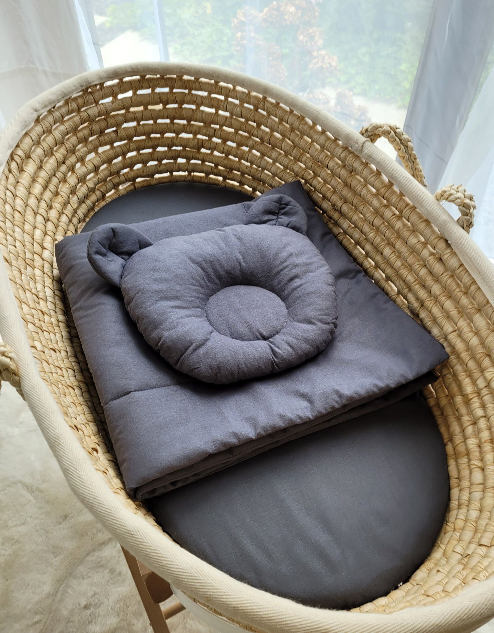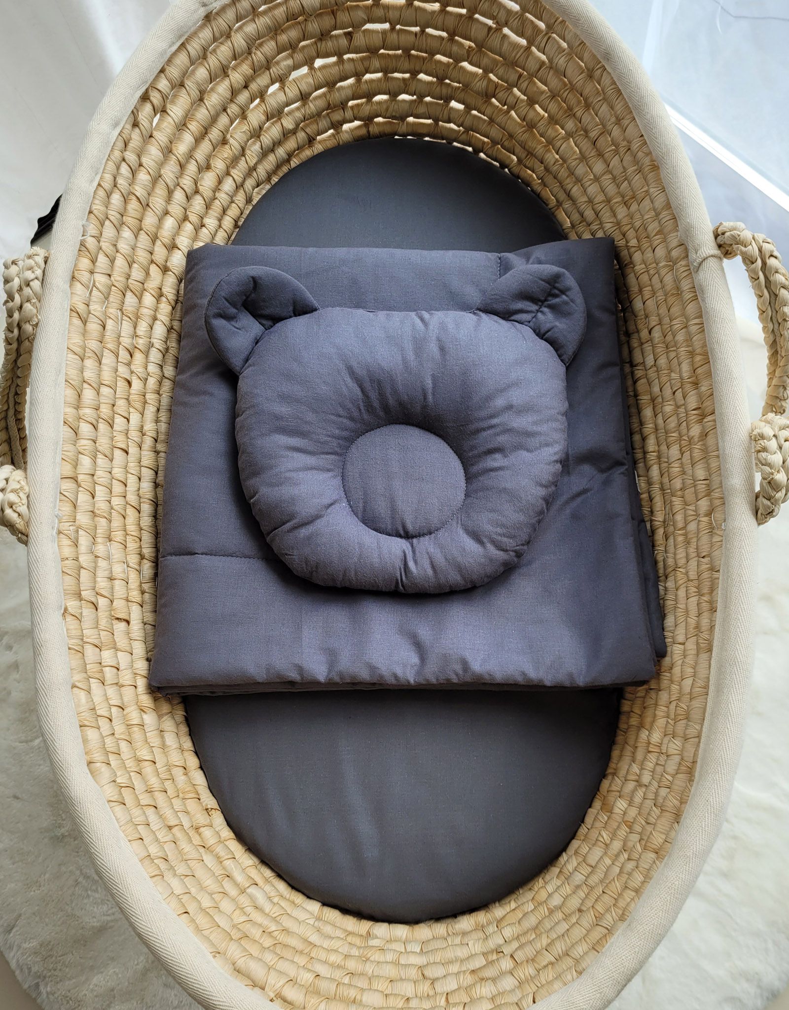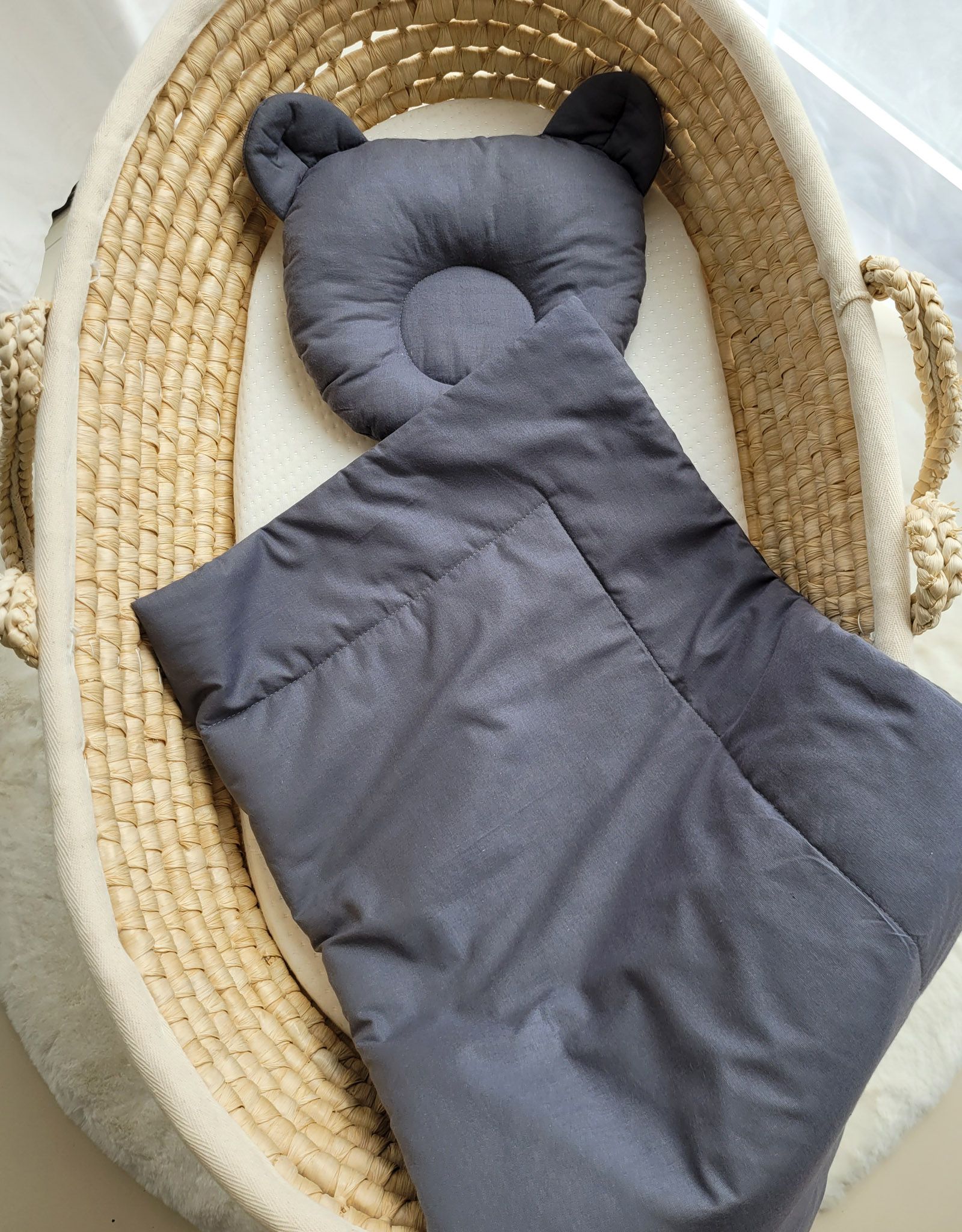 Pościel niemowlęca do gondoli wózka, kosza Mojżesza lub łóżeczka. Wykonana z trwałej 100% atestowanej bawełny. Jest miła i przyjemna w dotyku. Nie podrażnia delikatnej skóry dziecka.