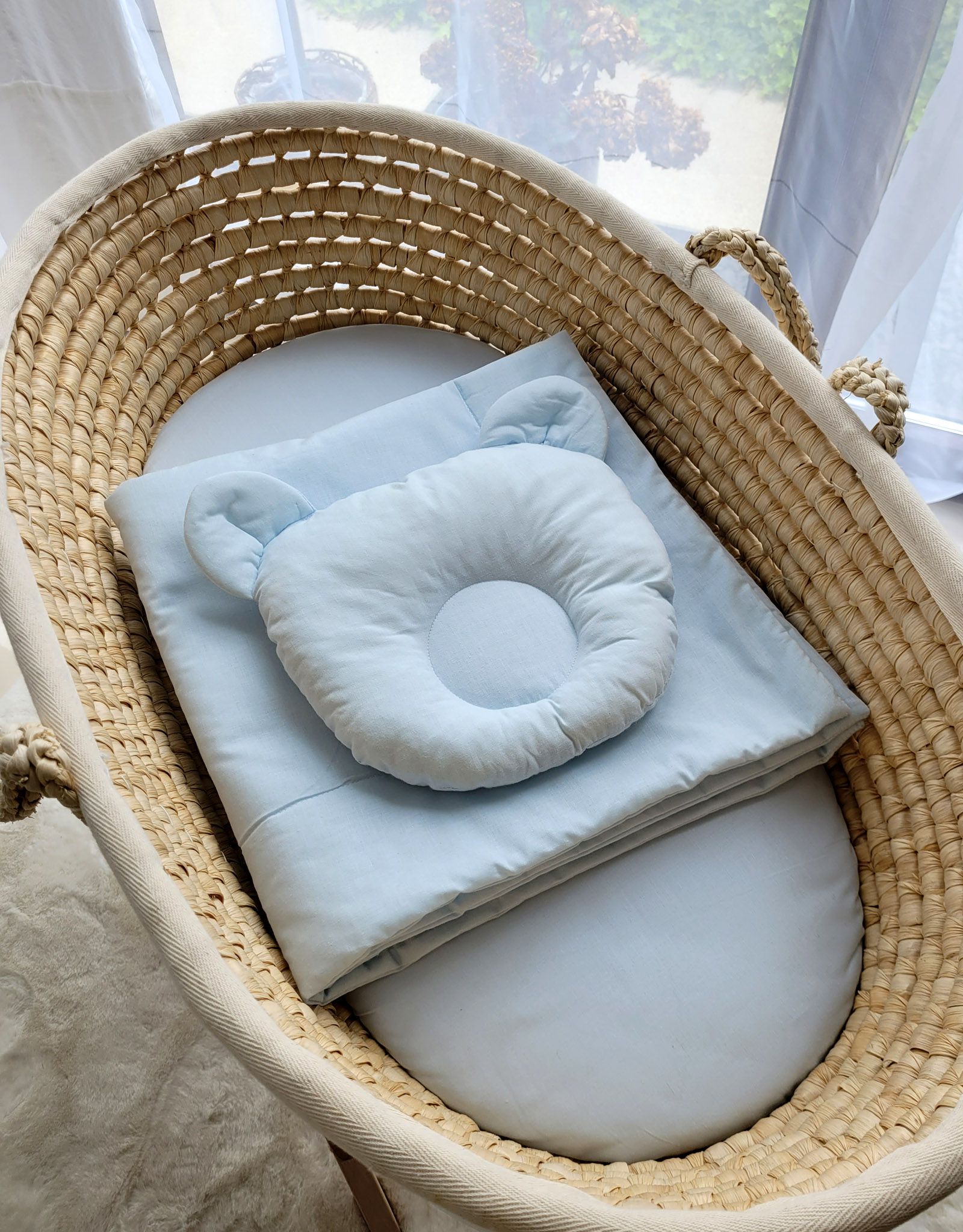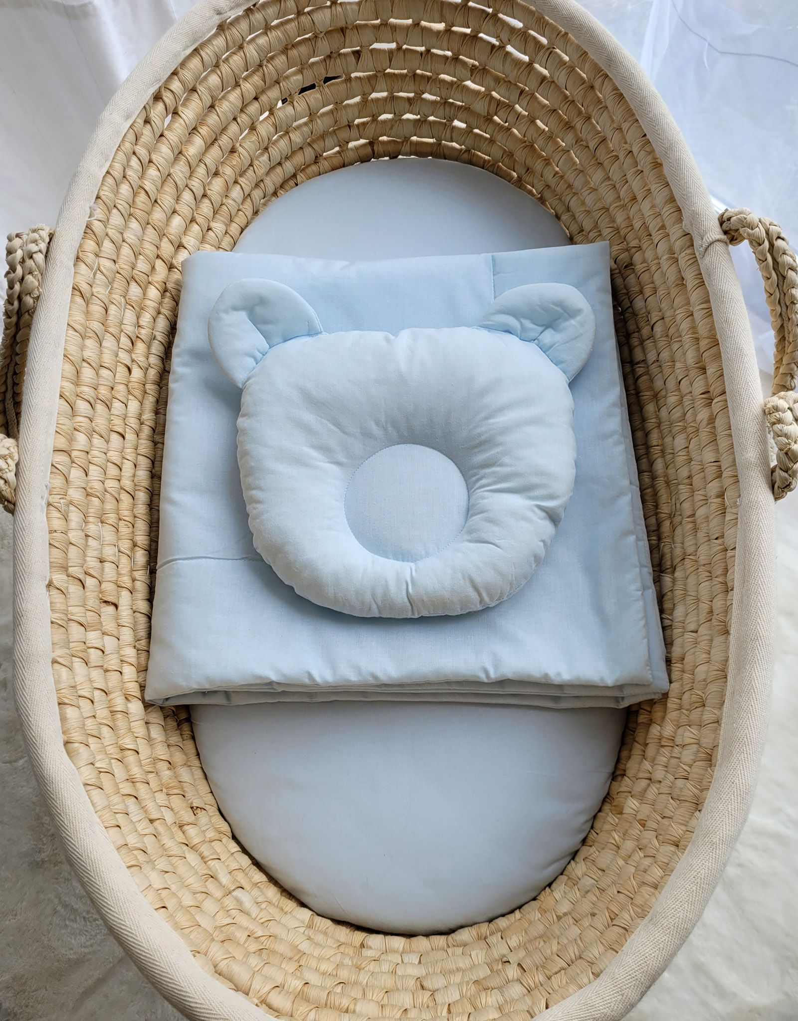 Pościel niemowlęca do gondoli wózka, kosza Mojżesza lub łóżeczka. Wykonana z trwałej 100% atestowanej bawełny. Jest miła i przyjemna w dotyku. Nie podrażnia delikatnej skóry dziecka.