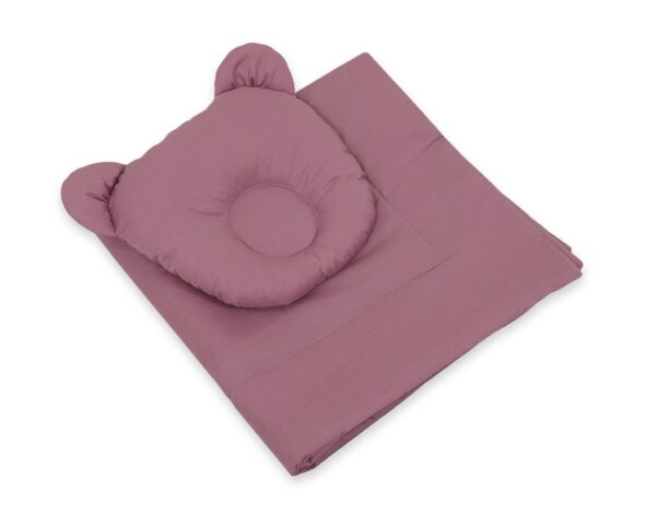 Pościel dla niemowląt z wypełnieniem kołderka i poduszka profilowana Miś – zestaw 2cz. – róż retro