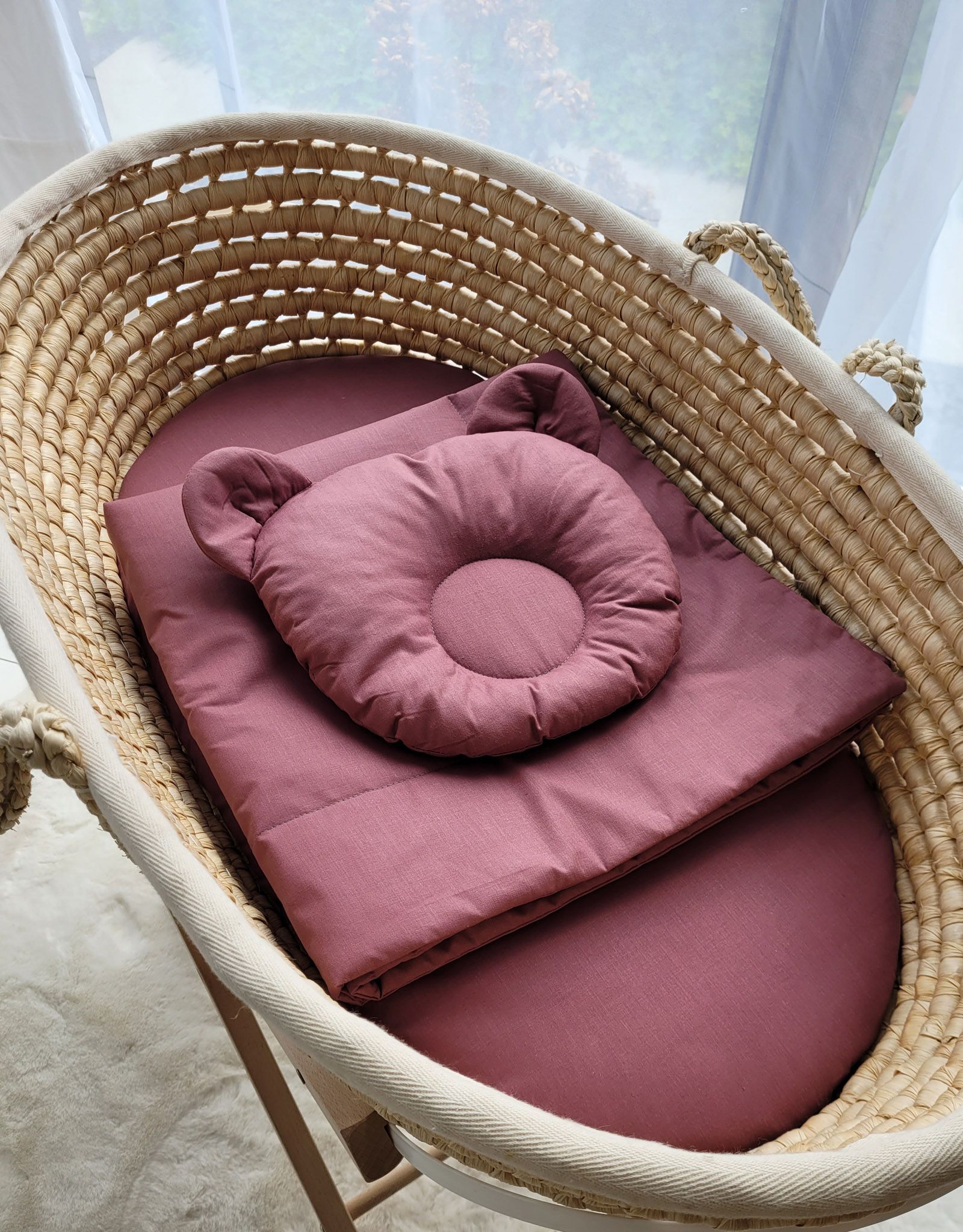 Pościel niemowlęca do gondoli wózka, kosza Mojżesza lub łóżeczka. Wykonana z trwałej 100% atestowanej bawełny. Jest miła i przyjemna w dotyku. Nie podrażnia delikatnej skóry dziecka.