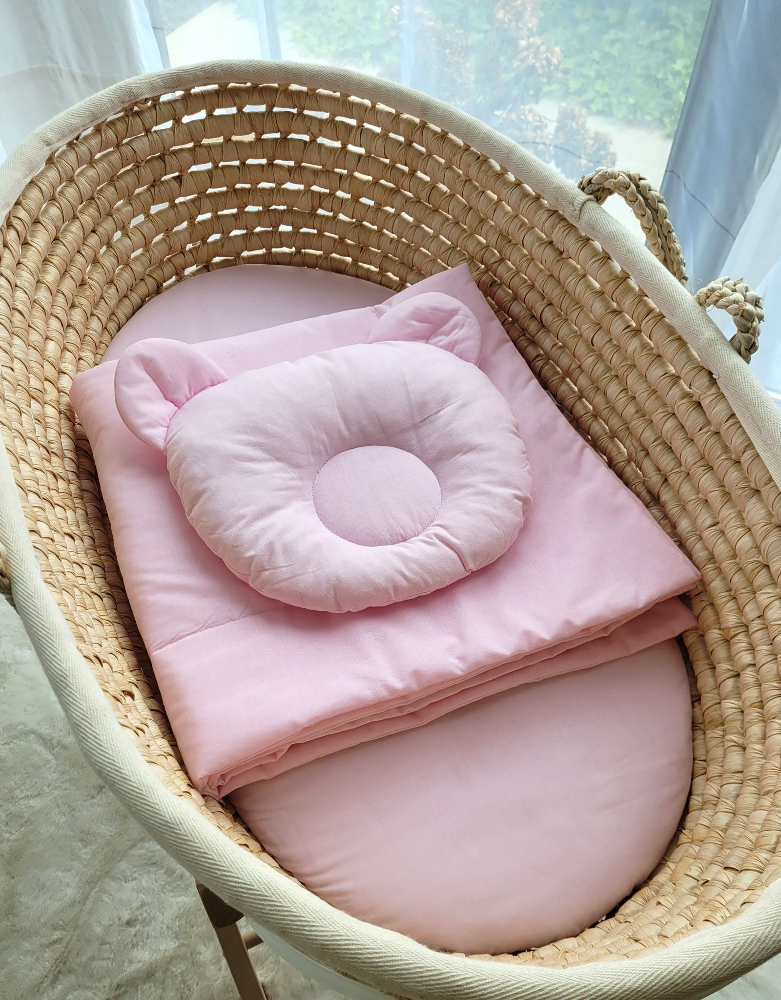 Pościel dla niemowląt z wypełnieniem kołderka i poduszka profilowana Miś – zestaw 2cz. – różowy
