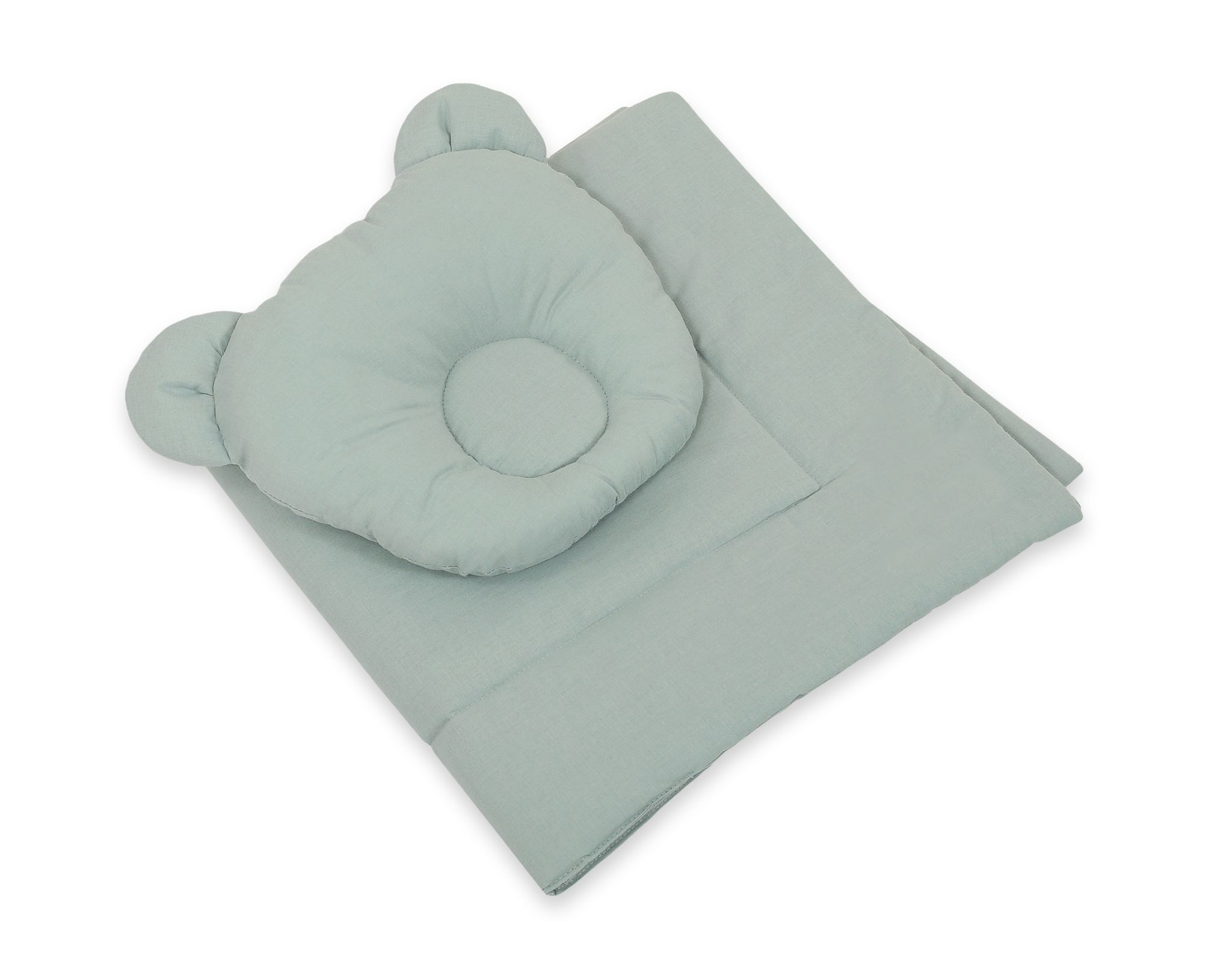 Pościel dla niemowląt z wypełnieniem kołderka i poduszka profilowana Miś – zestaw 2cz. – szałwia