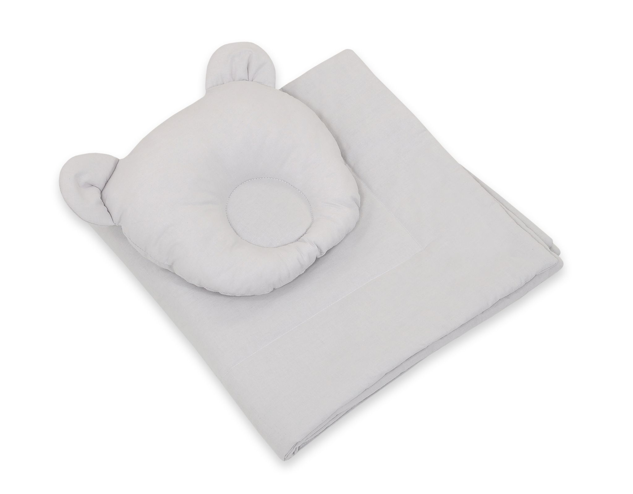 Pościel dla niemowląt z wypełnieniem kołderka i poduszka profilowana Miś – zestaw 2cz. – szary