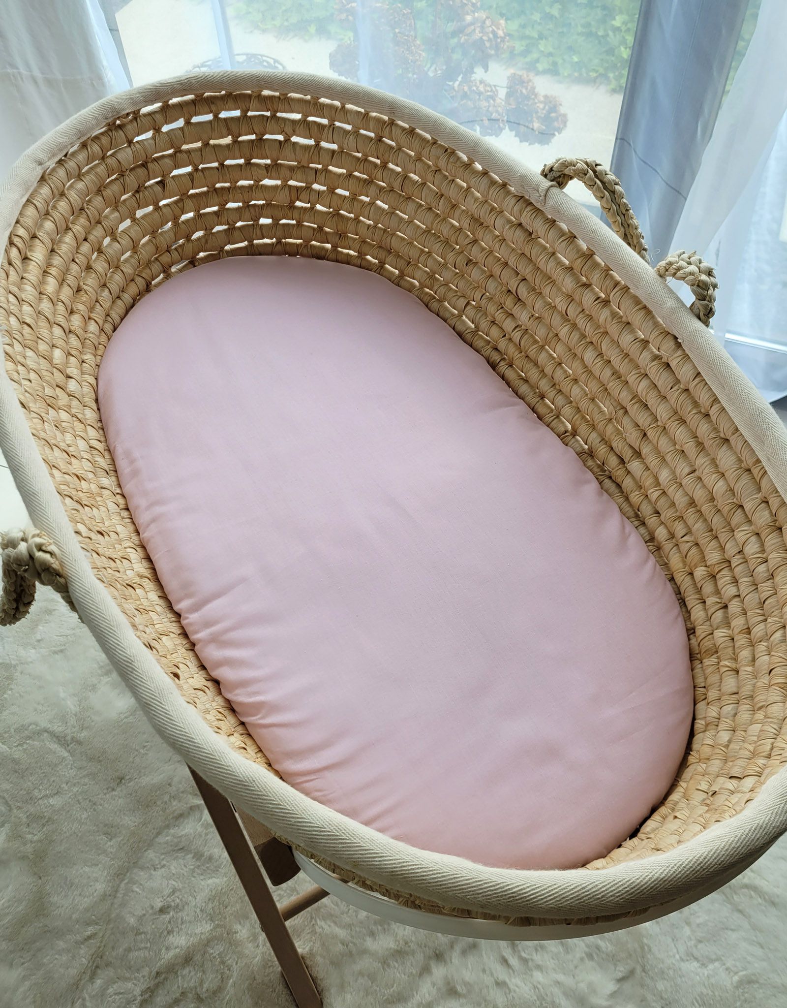 Prześcieradło bawełniane do kosza Mojżesza Boho wózka gondoli 75×35 cm – brudny róż