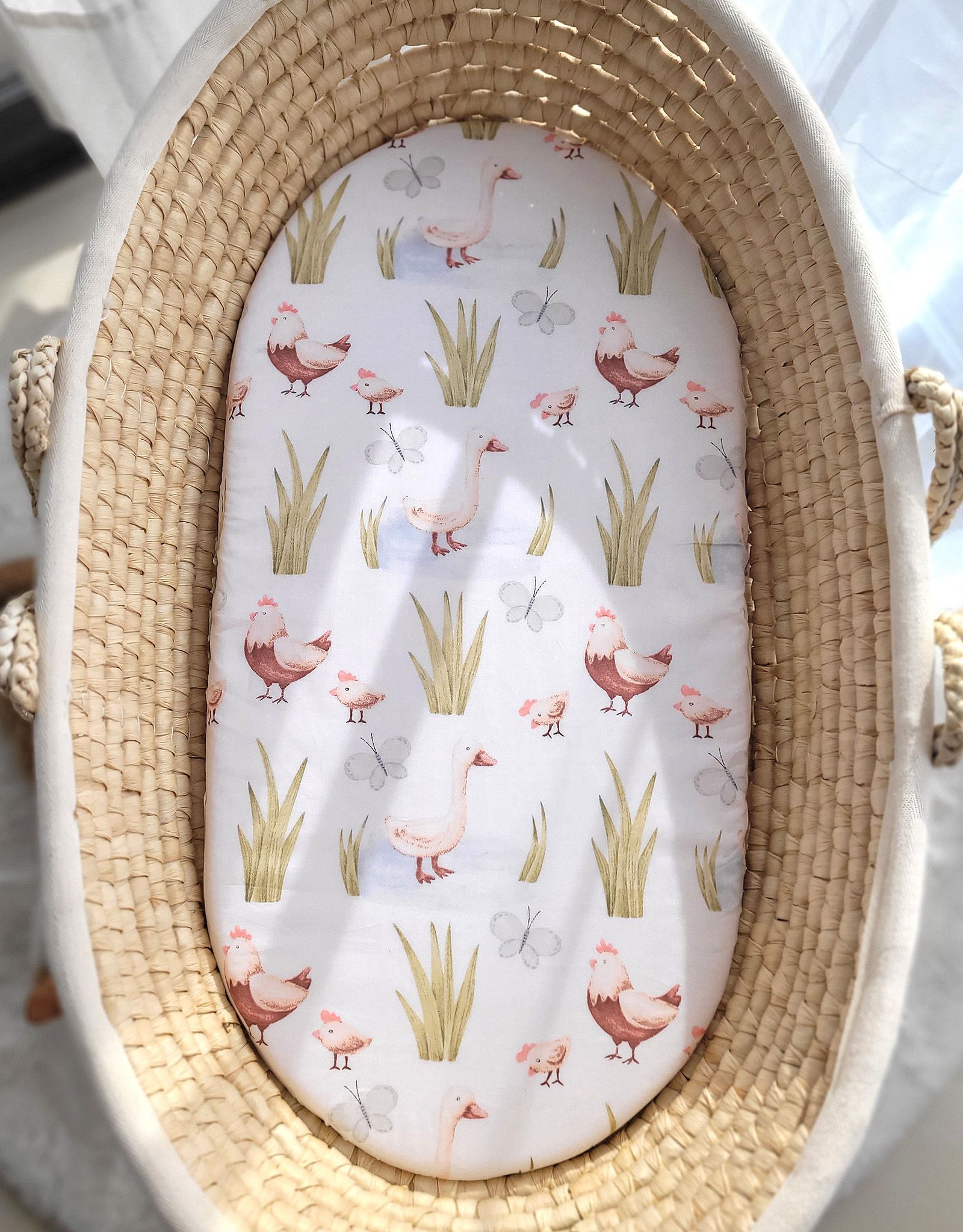Prześcieradło bawełniane do kosza Mojżesza Boho wózka gondoli 75×35 cm – In the country